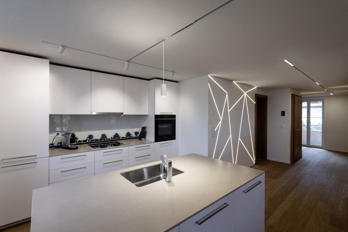 Des luminaires linéaires sobres pour une atmosphère très élégante : les projecteurs IN-LINE peuvent être intégrés dans le système de rails 48V TRACK pour donner le meilleur d'eux-mêmes : une lumière de haute qualité avec un angle de rayonnement de 95° dans différentes intensités lumineuses et un rendu des couleurs fidèle (CRI>90). Grâce à l'adaptateur pour rails, ces luminaires linéaires compatibles avec le système DALI IN-LINE assurent en outre un montage aussi simple que rapide.
