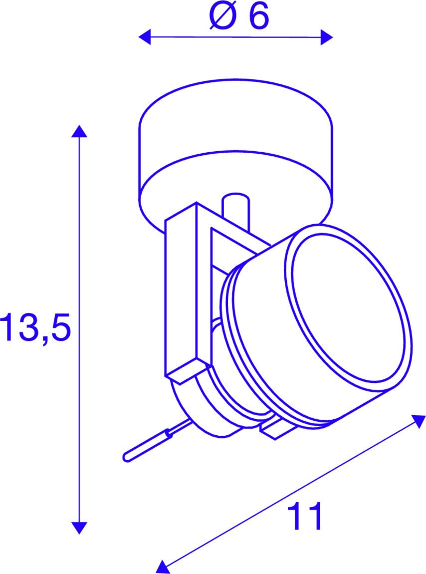 Intérieur applique murale ou de plafond. Matériau principal: Aluminium, Couleur: aluminium, Culot: GU10, Form: rond, Puissance assignée: 50 W, Classe de protection (EN 61140): I, Indice de protection (DIN EN 60529): IP20, donc Protection contre les corps étrangers solides d'un diamètre supérieur à 12,5 mm, Tension d'alimentation: 220-240V ~50/60 Hz, Diamètre du luminaire: 6 cm, Diamètre du baldaquin: 6 cm, Dimension (L/W/H): ( 11 / 6 / 13.5 cm ), Poids: 0.31 kg. Le produit répond aux exigences essentielles des directives européennes applicables et de la loi sur la sécurité des produits et porte le marquage CE.SLV Référence 147559 / EAN 4024163109055