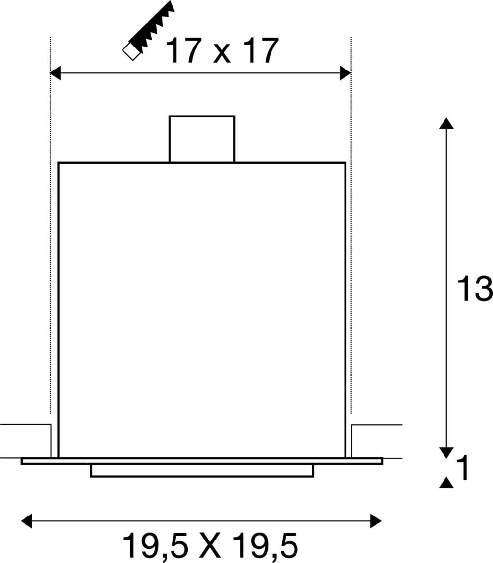 Intérieur plafonnier encastré. Matériau principal: Aluminium et Acier, Couleur: noir, Culot: GU10, Form: rectangulaire, Puissance assignée: 75 W, Classe de protection (EN 61140): I, Indice de protection (DIN EN 60529): IP20, donc Protection contre les corps étrangers solides d'un diamètre supérieur à 12,5 mm, Tension d'alimentation: 230V ~50Hz, Dimension (L/W/H): ( 19.5 / 19.5 / 14 cm ), Poids: 1.137 kg. Le produit répond aux exigences essentielles des directives européennes applicables et de la loi sur la sécurité des produits et porte le marquage CE.SLV Référence 115540 / EAN 4024163151535