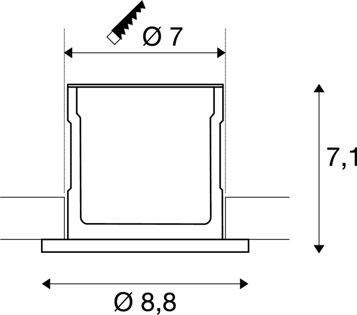 Intérieur plafonnier encastré avec corps lumineux LED fixe. Matériau principal: Aluminium et plastique, Couleur: noir, Dimmable: Variateur en début de phase,Variateur en fin de phase, Form: rond, Puissance assignée: 6 W, Flux lumineux assigné: 500 lm, Température de couleur (CCT): 3000K, Classe de protection (EN 61140): II, Indice de protection (DIN EN 60529): IP65, donc protection contre la pénétration de la poussière et protection contre les jets d'eau de toutes directions, Degré de résistance aux chocs selon IEC 62262: IK02, Tension d'alimentation: 220-240V ~50Hz, Diamètre du luminaire: 8.8 cm, Diamètre de la découpe: 7 cm, Dimension (L/W/H): ( 8.8 / 8.8 / 7.1 cm ), Poids: 0.265 kg. Le produit répond aux exigences essentielles des directives européennes applicables et de la loi sur la sécurité des produits et porte le marquage CE.SLV Référence 1001015 / EAN 4024163194624