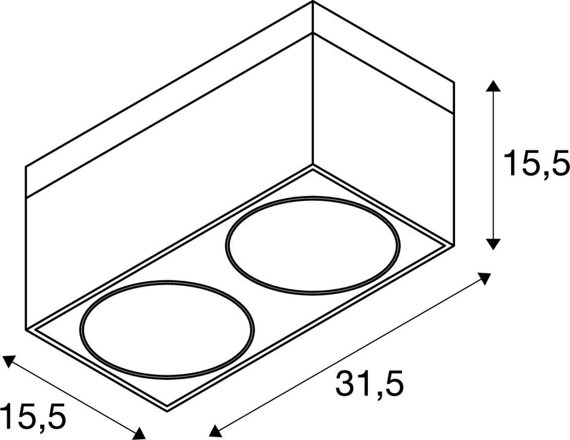 Intérieur plafonniers. Matériau principal: Acier, Couleur: blanc, Culot: GU10, Form: rectangulaire, Puissance assignée: 75 W, Classe de protection (EN 61140): I, Indice de protection (DIN EN 60529): IP20, donc Protection contre les corps étrangers solides d'un diamètre > 12,5 mm, Tension d'alimentation: 230V ~50Hz, Dimension (L/W/H): ( 31.5 / 15.5 / 15.5 cm ), Poids: 2.91 kg.SLV Référence 117111 / EAN 4024163131698