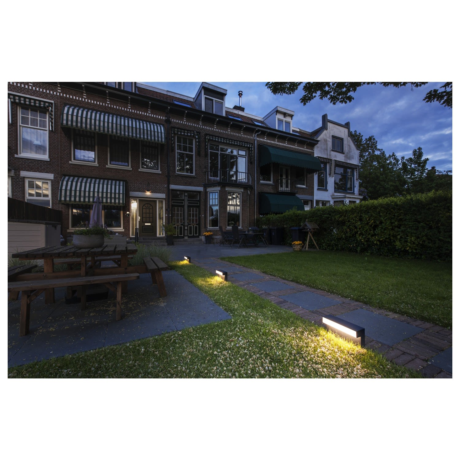 Dans le jardin, au bord des allées et chemins d'accès des maisons d'habitation, hôtels ou restaurants – avec sa grande diversité de modèles, la famille de luminaires L-LINE OUT offre un éclairage directionnel dans tous les espaces extérieurs. Chacun de ses membres, malgré des différences individuelles, présente un langage formel commun avec une ligne en L qui séduit par sa clarté. Concernant les aspects techniques, il n'a été consenti à aucun compromis : la sélection de la couleur de lumière (3 000/4 000 K) lors d'une installation très simple et l'indice de protection IP 65 ne sont que quelques-uns des arguments de l'applique L-LINE OUT.