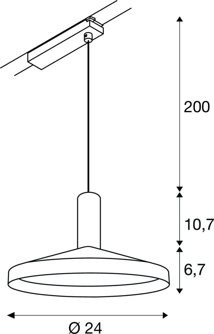 Intérieur 1~ Suspension avec corps lumineux LED fixe pour le Système de rail 1 allumage. Matériau principal: aluminium et Acier, Couleur: noir, Dimmable: Variateur en fin de phase, Form: rond, Puissance assignée: 9.5 W, Flux lumineux assigné: 700 / 800 lm, Température de couleur (CCT): 2700/3000K, Indice général de rendu des couleurs (IRC) Ra: 90, Maintien du flux lumineux: L80B20 ≥ 50000 h, Classe de protection (EN 61140): II, Indice de protection (DIN EN 60529): IP20, Degré de résistance aux chocs selon IEC 62262: IK03, Tension d'alimentation: 220-240V ~50/60 Hz, Diamètre du luminaire: 24 cm, Dimension (L/W/H): ( 24 / 24 / 16.5 cm ), Poids: 1.158 kg. Le produit répond aux exigences essentielles des directives européennes applicables et de la loi sur la sécurité des produits et porte le marquage CE.SLV Référence 1010799 / EAN 4024163321808