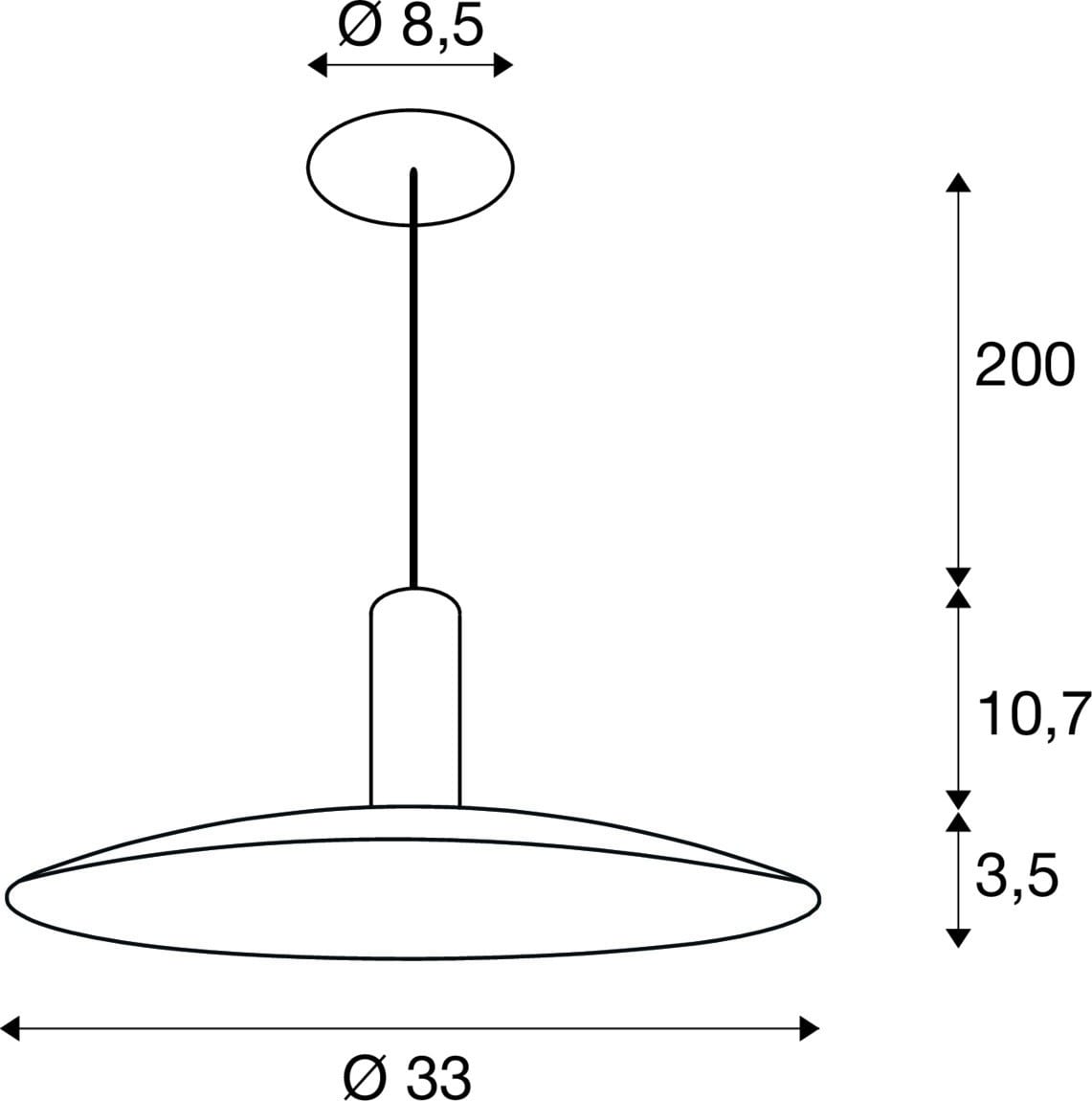 Intérieur suspensions avec corps lumineux LED fixe. Matériau principal: aluminium et Acier, Couleur: noir, Dimmable: Variateur en fin de phase, Form: rond, Puissance assignée: 9.5 W, Flux lumineux assigné: 650 / 700 lm, Température de couleur (CCT): 2700/3000K, Indice général de rendu des couleurs (IRC) Ra: 90, Maintien du flux lumineux: L80B20 ≥ 50000 h, Classe de protection (EN 61140): II, Indice de protection (DIN EN 60529): IP20, Degré de résistance aux chocs selon IEC 62262: IK03, Tension d'alimentation: 220-240V ~50/60 Hz, Diamètre du luminaire: 33 cm, Diamètre du baldaquin: 8.5 cm, Diamètre de la découpe: 6.8 cm, Dimension (L/W/H): ( 33 / 33 / 13.5 cm ), Poids: 1.925 kg. Le produit répond aux exigences essentielles des directives européennes applicables et de la loi sur la sécurité des produits et porte le marquage CE.SLV Référence 1010794 / EAN 4024163321853