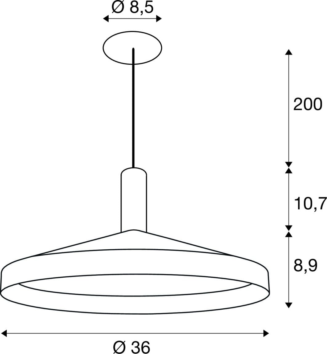 Intérieur suspensions avec corps lumineux LED fixe. Matériau principal: aluminium et Acier, Couleur: noir, Dimmable: Variateur en fin de phase, Form: rond, Puissance assignée: 9.5 W, Flux lumineux assigné: 700 / 800 lm, Température de couleur (CCT): 2700/3000K, Indice général de rendu des couleurs (IRC) Ra: 90, Maintien du flux lumineux: L80B20 ≥ 50000 h, Classe de protection (EN 61140): II, Indice de protection (DIN EN 60529): IP20, Degré de résistance aux chocs selon IEC 62262: IK03, Tension d'alimentation: 220-240V ~50/60 Hz, Diamètre du luminaire: 36 cm, Diamètre du baldaquin: 8.5 cm, Diamètre de la découpe: 6.8 cm, Dimension (L/W/H): ( 36 / 36 / 19 cm ), Poids: 2 kg. Le produit répond aux exigences essentielles des directives européennes applicables et de la loi sur la sécurité des produits et porte le marquage CE.SLV Référence 1010795 / EAN 4024163321846