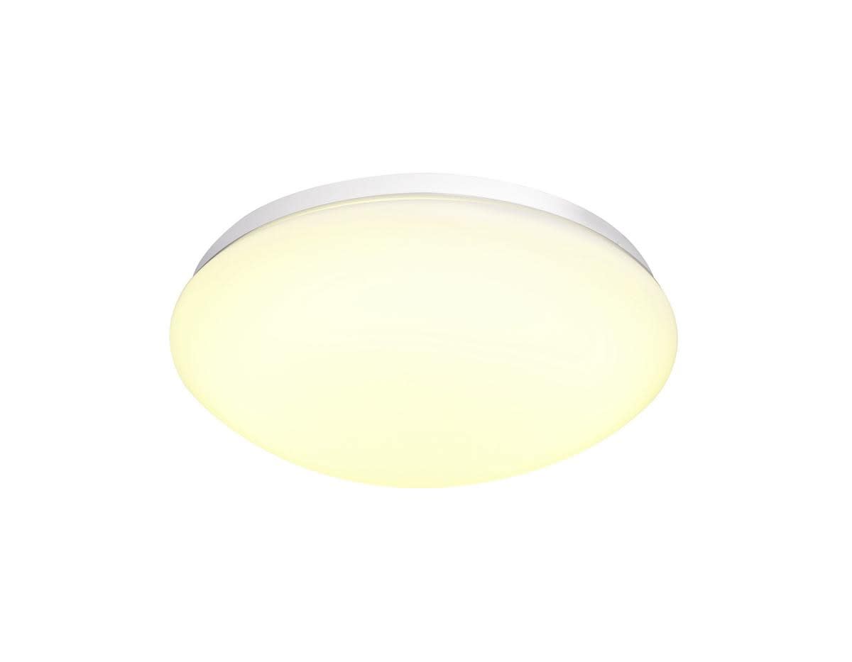 Intérieur applique murale ou de plafond avec corps lumineux LED fixe. Matériau principal: Aluminium et polycarbonate (PC), Couleur: blanc, Form: rond, Puissance assignée: 13.5 W, Flux lumineux assigné: 1550 / 1600 lm, Température de couleur (CCT): 3000/4000K, Indice général de rendu des couleurs (IRC) Ra: 80, Maintien du flux lumineux: L70B50 ≥ 50000 h, Classe de protection (EN 61140): I, Indice de protection (DIN EN 60529): IP44, donc protection contre les corps étrangers solides > 1mm et protection contre les projections d'eau de toutes directions, Degré de résistance aux chocs selon IEC 62262: IK02, Tension d'alimentation: 220-240V ~50/60Hz sek. 350mA, Diamètre du luminaire: 30 cm, Dimension (L/W/H): ( 30 / 30 / 9.3 cm ), Poids: 0.646 kg. Le produit répond aux exigences essentielles des directives européennes applicables et de la loi sur la sécurité des produits et porte le marquage CE.SLV Référence 1002020 / EAN 4024163222389