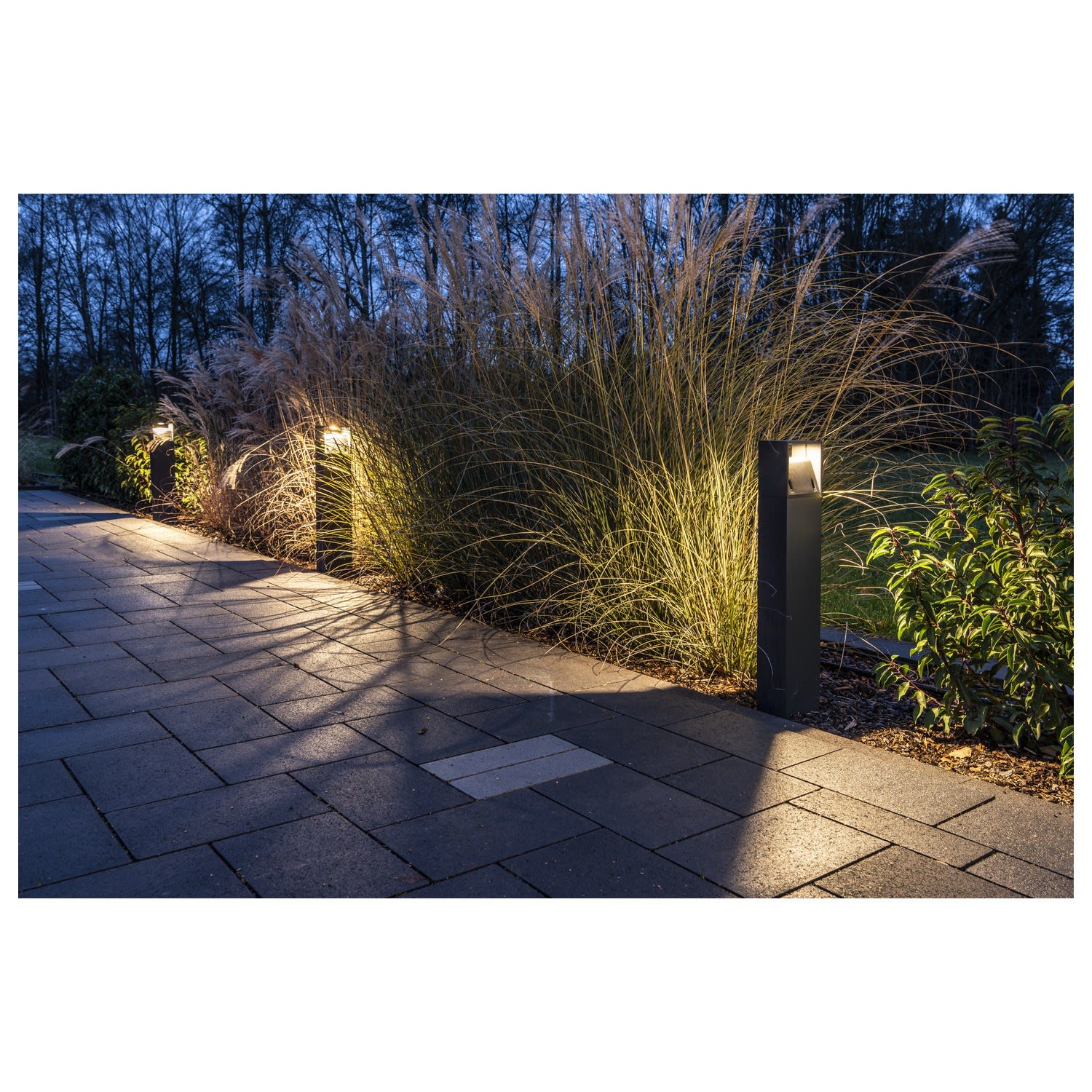 Extérieur lampadaires avec corps lumineux LED fixe. Matériau principal: Aluminium, Couleur: anthracite, Form: rectangulaire, Puissance assignée: 9.5 W, Flux lumineux assigné: 570 lm, Température de couleur (CCT): 3000K, Indice général de rendu des couleurs (IRC) Ra: 80, Maintien du flux lumineux: L70B50 ≥ 40000 h, Classe de protection (EN 61140): I, Indice de protection (DIN EN 60529): IP65, donc protection contre les corps étrangers solides > 1mm et protection contre les projections d'eau de toutes les directions, Degré de résistance aux chocs selon IEC 62262: IK04, Tension d'alimentation: 100-240V ~50/60Hz sek. 500mA, Dimension (L/W/H): ( 8 / 13 / 69.5 cm ), Poids: 3.006 kg. Le produit répond aux exigences essentielles des directives européennes applicables et de la loi sur la sécurité des produits et porte le marquage CE.SLV Référence 232125 / EAN 4024163131414
