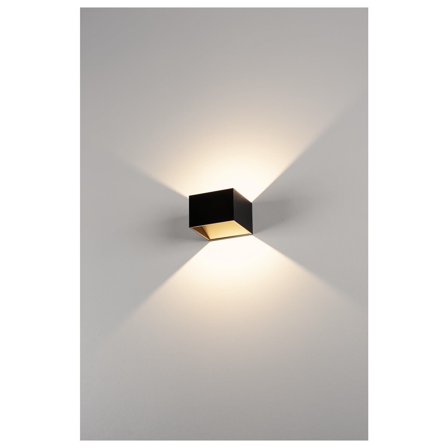 Intérieur appliques avec corps lumineux LED fixe. Matériau principal: Aluminium, Couleur: noir et or, Form: rectangulaire, Puissance assignée: 6 W, Flux lumineux assigné: 300 lm, Température de couleur (CCT): 3000K, Indice général de rendu des couleurs (IRC) Ra: 90, Maintien du flux lumineux: L70B50 ≥ 30000 h, Classe de protection (EN 61140): I, Indice de protection (DIN EN 60529): IP20, donc Protection contre les corps étrangers solides d'un diamètre supérieur à 12,5 mm, Tension d'alimentation: 100-240V ~50/60Hz sek. 500mA, Dimension (L/W/H): ( 10 / 10 / 7 cm ), Poids: 0.505 kg. Le produit répond aux exigences essentielles des directives européennes applicables et de la loi sur la sécurité des produits et porte le marquage CE.SLV Référence 151320 / EAN 4024163150903