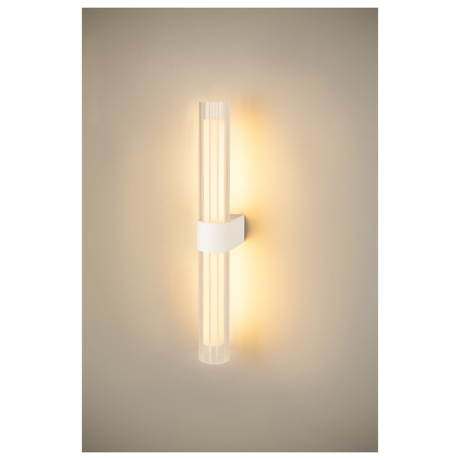 Intérieur appliques avec corps lumineux LED fixe. Matériau principal: aluminium, Couleur: blanc, Form: cylindrique, Puissance assignée: 11 W, Flux lumineux assigné: 800 lm, Température de couleur (CCT): 3000K, Maintien du flux lumineux: L70B50 ≥ 30000 h, Classe de protection (EN 61140): I, Indice de protection (DIN EN 60529): IP44, donc Protégé contre les corps solides > 1 mm et Protégé contre les projections d'eau dans toutes les directions, Tension d'alimentation: 220-240V ~50/60 Hz, Dimension (L/W/H): ( 13.5 / 7.5 / 58.7 cm ), Poids: 2.219 kg. Le produit répond aux exigences essentielles des directives européennes applicables et de la loi sur la sécurité des produits et porte le marquage CE.SLV Référence 1007617 / EAN 4024163280648
