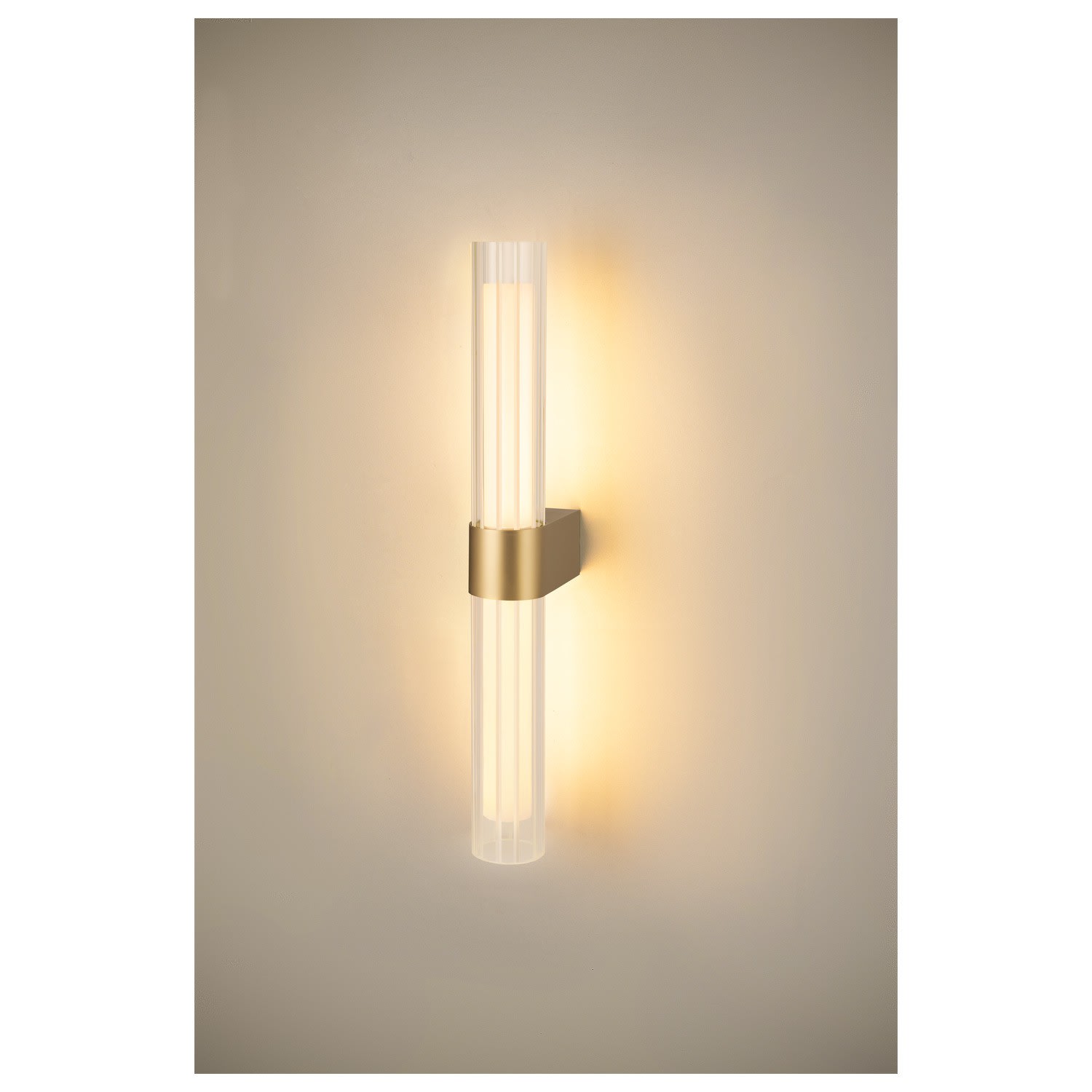 L'applique en saillie LYGANT ajoute une note de design moderne et élégant dans toutes les salles de bain. Cette conception haut de gamme à deux sources, réalisée en acier inoxydable, est disponible en quatre coloris tendance différents. Son diffuseur intérieur opale répand une lumière blanc chaud (3000 K) au rendu de couleurs neutre (IRC > 90) à travers un abat-jour en verre transparent strié de lignes, pour métamorphoser n'importe quelle pièce en cocon de bien-être. Et, bien sûr, grâce à son indice IP44, LYGANT présente une protection optimale contre les projections d'eau.