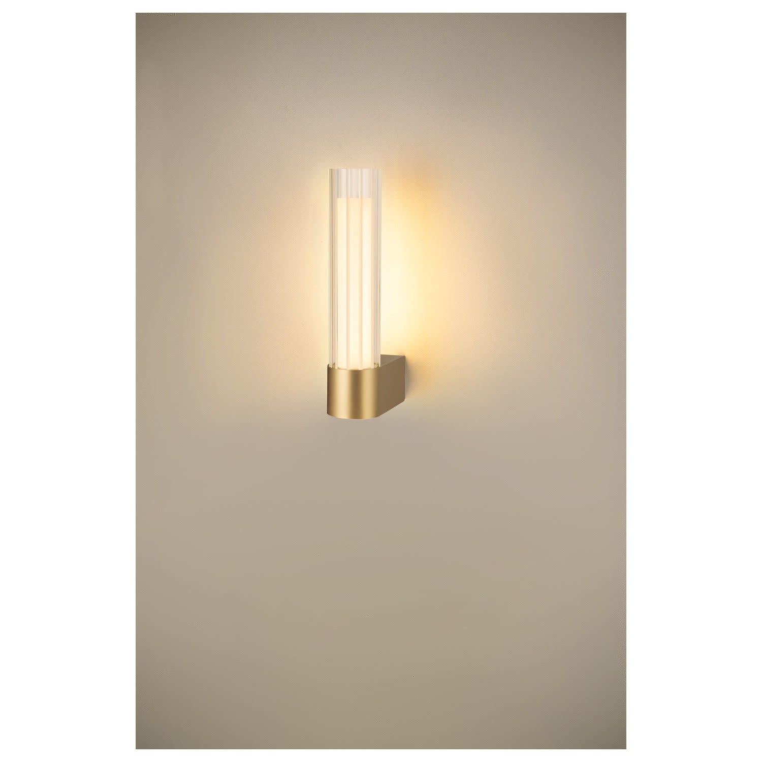 Intérieur appliques avec corps lumineux LED fixe. Matériau principal: aluminium, Couleur: laiton, Form: cylindrique, Puissance assignée: 8 W, Flux lumineux assigné: 560 lm, Température de couleur (CCT): 3000K, Indice général de rendu des couleurs (IRC) Ra: 90, Maintien du flux lumineux: L70B50 ≥ 30000 h, Classe de protection (EN 61140): I, Indice de protection (DIN EN 60529): IP44, donc Protégé contre les corps solides > 1 mm et Protégé contre les projections d'eau dans toutes les directions, Tension d'alimentation: 220-240V ~50/60 Hz, Dimension (L/W/H): ( 13.5 / 7.5 / 32.6 cm ), Poids: 1.435 kg. Le produit répond aux exigences essentielles des directives européennes applicables et de la loi sur la sécurité des produits et porte le marquage CE.SLV Référence 1007612 / EAN 4024163280693