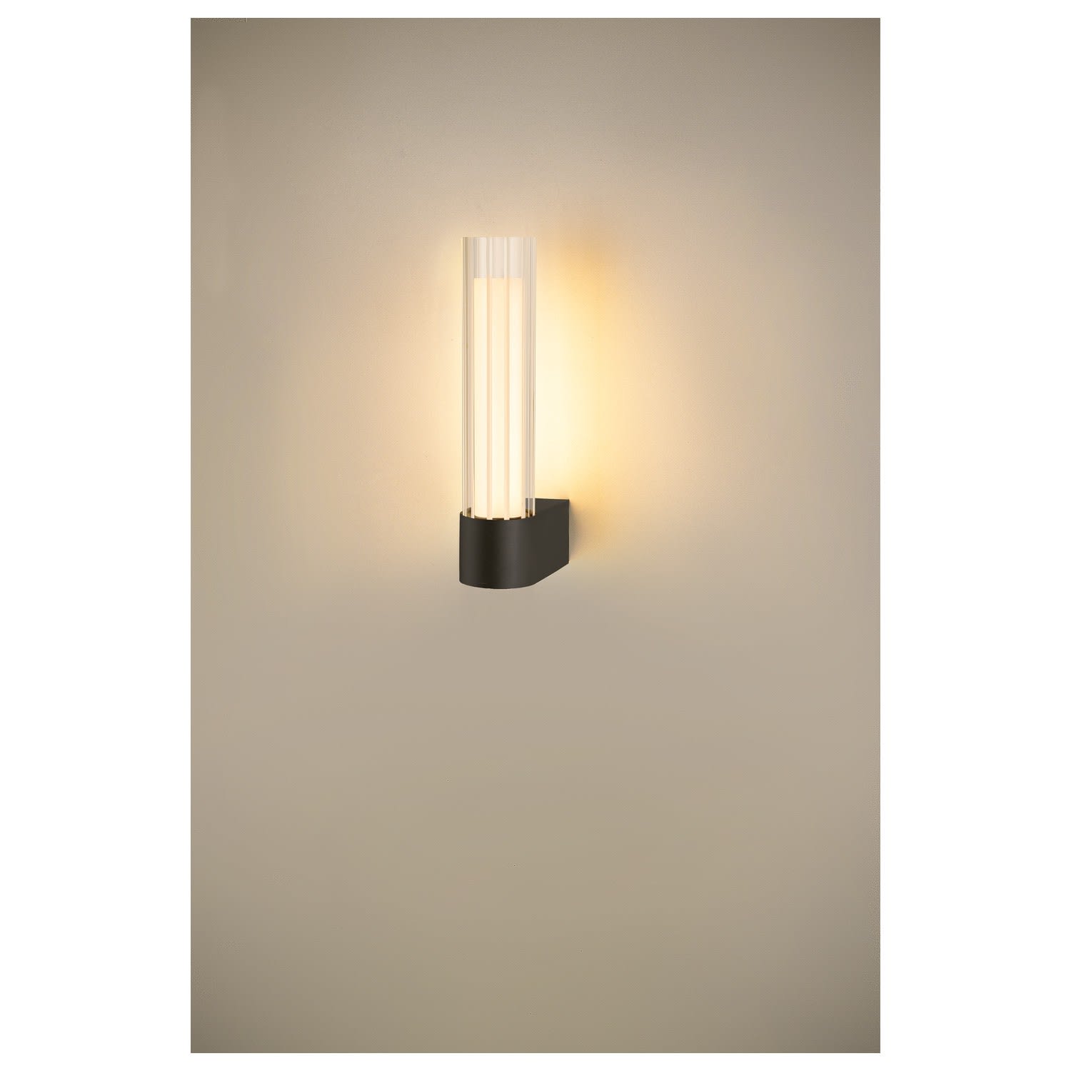 L'applique en saillie LYGANT ajoute une note de design moderne et élégant dans toutes les salles de bain. Cette conception haut de gamme à deux sources, réalisée en acier inoxydable, est disponible en quatre coloris tendance différents. Son diffuseur intérieur opale répand une lumière blanc chaud (3000 K) au rendu de couleurs neutre (IRC > 90) à travers un abat-jour en verre transparent strié de lignes, pour métamorphoser n'importe quelle pièce en cocon de bien-être. Et, bien sûr, grâce à son indice IP44, LYGANT présente une protection optimale contre les projections d'eau.