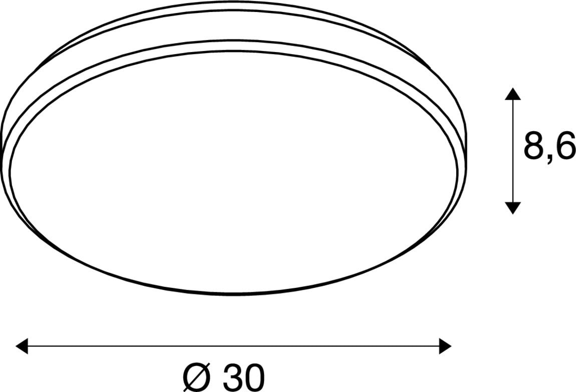 Intérieur plafonniers avec corps lumineux LED fixe. Matériau principal: Acrylate de polyméthyle (PMMA) et Acier, Couleur: gris, Dimmable: Variateur en début de phase,Variateur en fin de phase, Form: rond, Puissance assignée: 15 W, Flux lumineux assigné: 1200 lm, Température de couleur (CCT): 3000K, Maintien du flux lumineux: L70B50 ≥ 30000 h, Classe de protection (EN 61140): I, Indice de protection (DIN EN 60529): IP20, donc Protection contre les corps étrangers solides d'un diamètre > 12,5mm, Tension d'alimentation: 200-240V ~50Hz sek. 430mA, Diamètre du luminaire: 30 cm, Dimension (L/W/H): ( 30 / 30 / 8.6 cm ), Poids: 0.654 kg. Le produit répond aux exigences essentielles des directives européennes applicables et de la loi sur la sécurité des produits et porte le marquage CE.SLV Référence 155156 / EAN 4024163170727