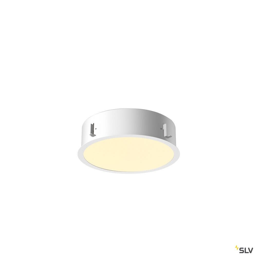Intérieur plafonnier encastré avec corps lumineux LED fixe. Matériau principal: Aluminium et Acrylate de polyméthyle (PMMA), Couleur: blanc, Form: rond, Puissance assignée: 14 W, Flux lumineux assigné: 1500 / 1600 lm, Température de couleur (CCT): 3000/4000K, Indice général de rendu des couleurs (IRC) Ra: 90, Maintien du flux lumineux: L70B50 ≥ 25000 h, Classe de protection (EN 61140): III, Indice de protection (DIN EN 60529): IP20, donc Protection contre les corps étrangers solides d'un diamètre > 12,5 mm, Tension d'alimentation: 350mA, Diamètre du luminaire: 30 cm, Diamètre de la découpe: 29 cm, Dimension (L/W/H): ( 30 / 30 / 10.1 cm ), Poids: 1.494 kg. Le produit répond aux exigences essentielles des directives européennes applicables et de la loi sur la sécurité des produits et porte le marquage CE.SLV Référence 1001905 / EAN 4024163221474