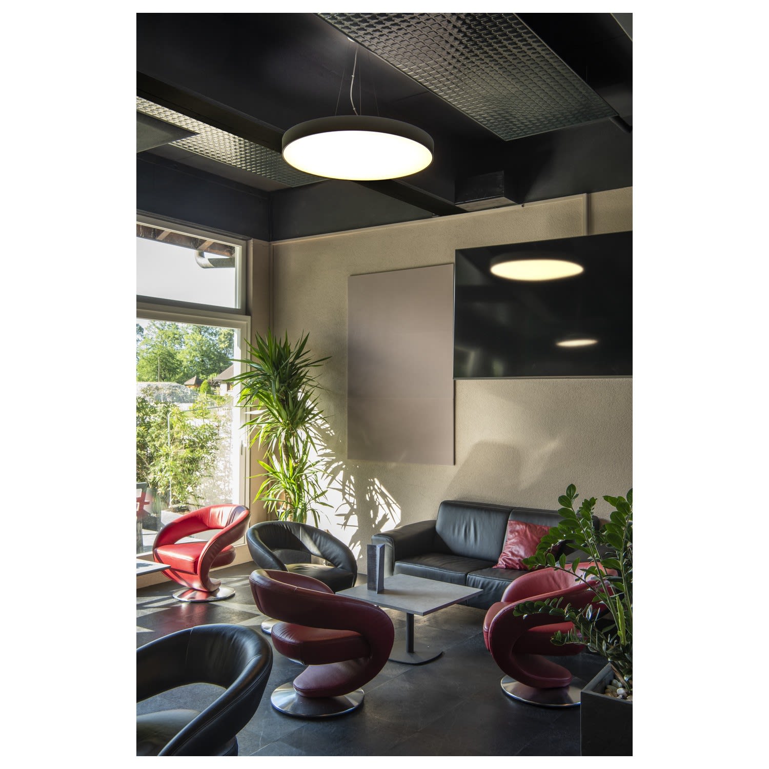 MEDO® PRO 90, plafonnier LED, intérieur, rond, noir, noir, LED, 74 W, 3000-4000 K, IP 50, IRC 90, 11000/11200 lm, IK02, variable TRIAC, variateur en fin de phase, UGR < 25, aluminium