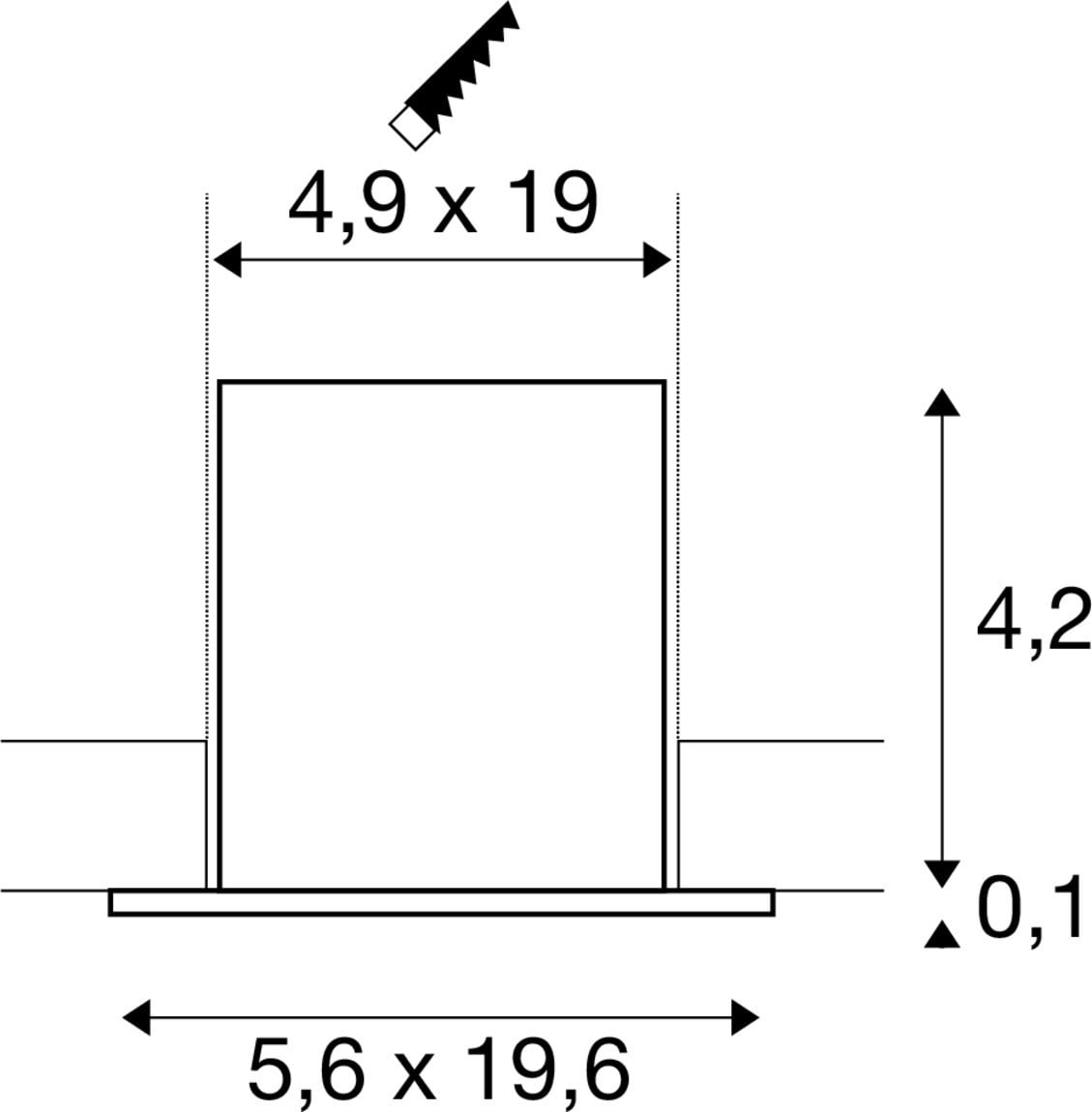 Intérieur plafonnier encastré avec corps lumineux LED fixe. Couleur: noir, Form: rectangulaire, Flux lumineux assigné: 770 lm, Température de couleur (CCT): 2700K, Classe de protection (EN 61140): III, Indice de protection (DIN EN 60529): IP20, Degré de résistance aux chocs selon IEC 62262: IK02, Dimension (L/W/H): ( 19.6 / 5.6 / 4.3 cm ), Poids: 0.325 kg. Le produit répond aux exigences essentielles des directives européennes applicables et de la loi sur la sécurité des produits et porte le marquage CE.SLV Référence 1005415 / EAN 4024163254809
