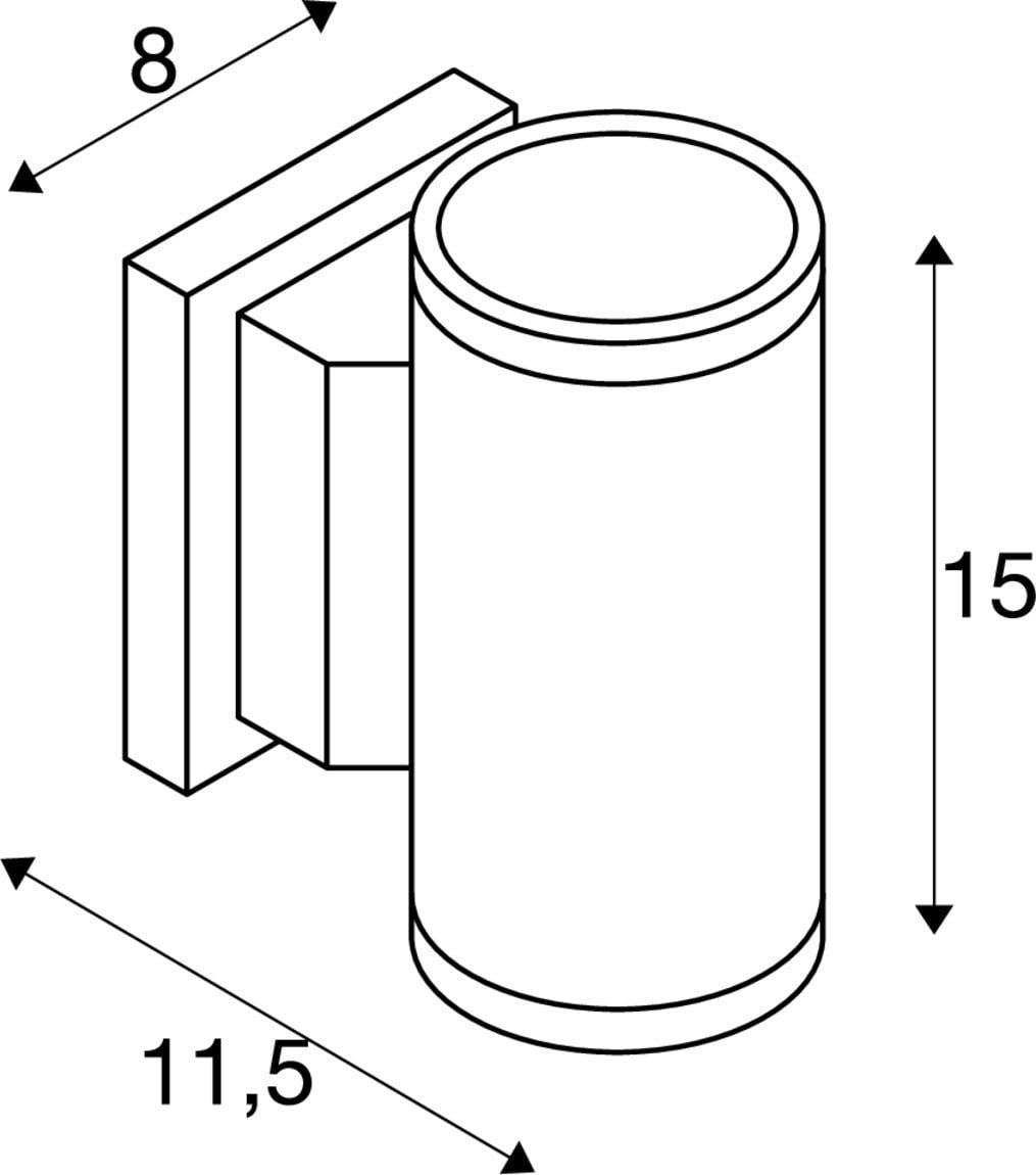 Extérieur appliques. Matériau principal: Aluminium et Verre, Couleur: anthracite, Culot: GU10, Form: cylindrique, Puissance assignée: 35 W, Classe de protection (EN 61140): I, Indice de protection (DIN EN 60529): IP55, donc Protection contre les dépôts de poussière et Protection contre les jets d'eau de toutes directions, Degré de résistance aux chocs selon IEC 62262: IK02, Tension d'alimentation: 230V ~50Hz, Dimension (L/W/H): ( 11.5 / 8 / 15 cm ), Poids: 0.598 kg. Le produit répond aux exigences essentielles des directives européennes applicables et de la loi sur la sécurité des produits et porte le marquage CE.SLV Référence 233115 / EAN 4024163140324