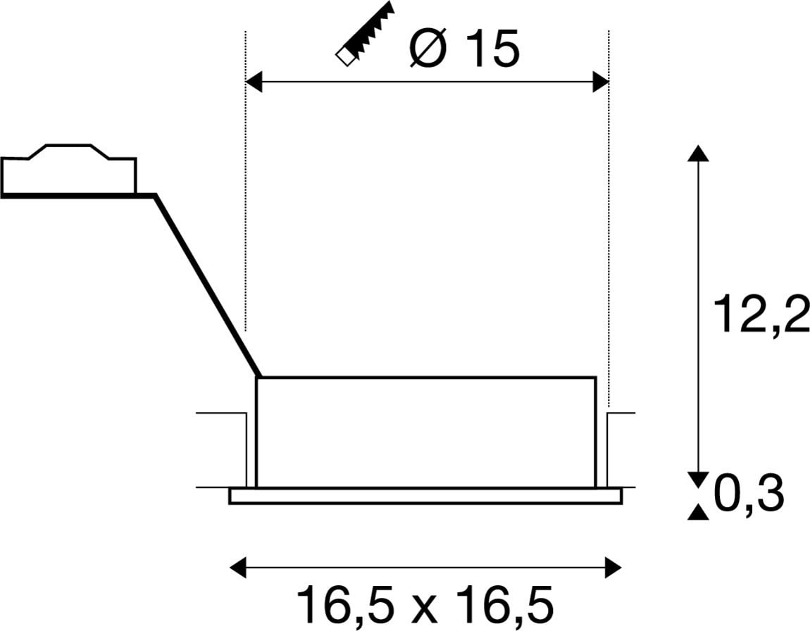 Intérieur plafonnier encastré. Matériau principal: Aluminium, Couleur: noir, Culot: GU10, Form: rectangulaire, Puissance assignée: 75 W, Classe de protection (EN 61140): I, Indice de protection (DIN EN 60529): IP20, donc Protection contre les corps étrangers solides d'un diamètre > 12,5 mm, Tension d'alimentation: 230V ~50Hz, Diamètre de la découpe: 15 cm, Dimension (L/W/H): ( 16.5 / 16.5 / 12.5 cm ), Poids: 0.423 kg. Le produit répond aux exigences essentielles des directives européennes applicables et de la loi sur la sécurité des produits et porte le marquage CE.SLV Référence 113830 / EAN 4024163150354