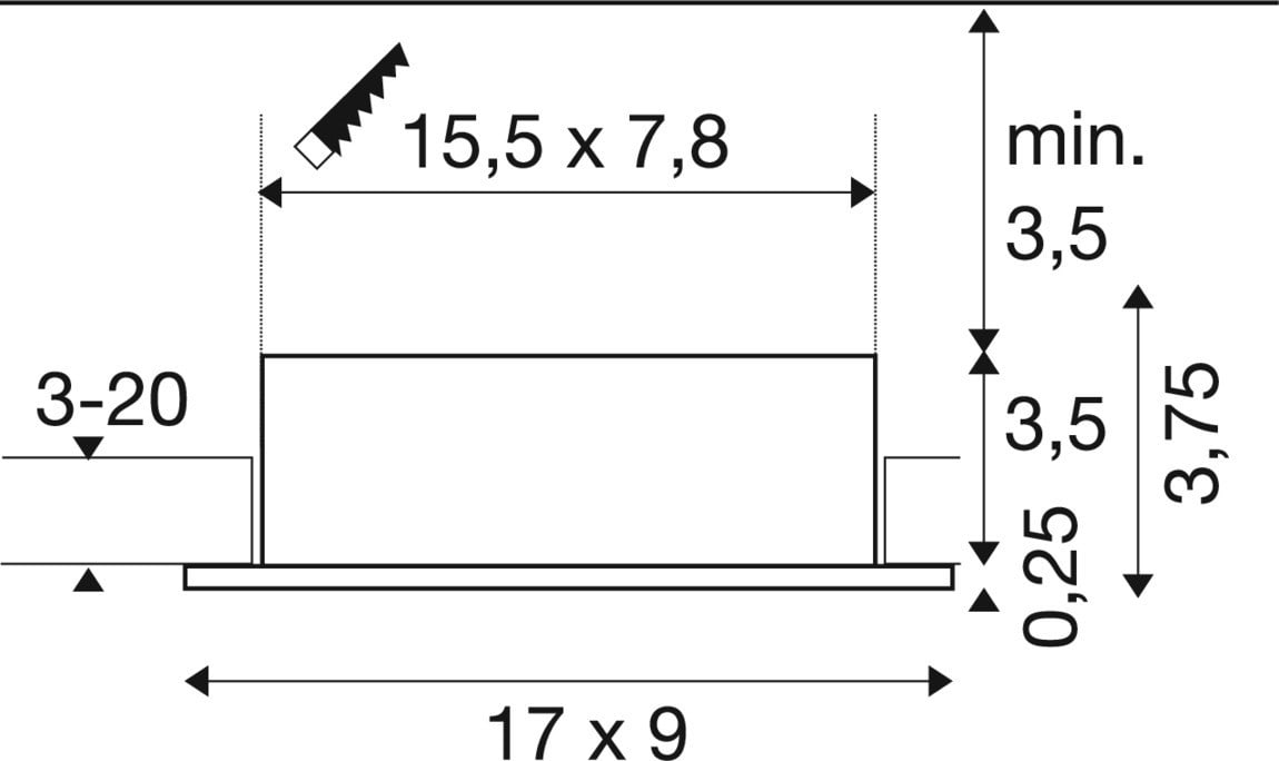hauteur/profondeur d'encastrement: