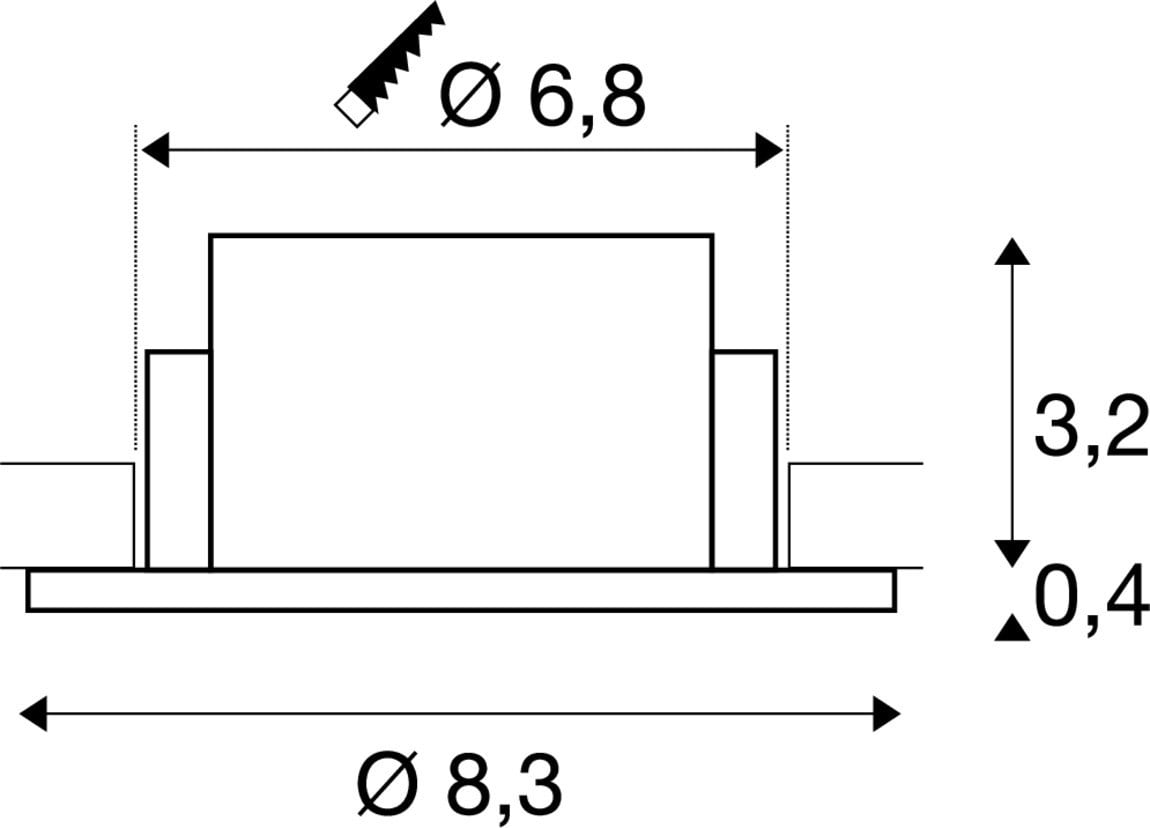 Cache. Matériau principal: aluminium, Couleur: blanc, Indice de protection (DIN EN 60529): IP65, Diamètre du luminaire: 8.3 cm, Diamètre de la découpe: 6.8 cm, Dimension (L/W/H): ( 8.3 / 8.3 / 3.55 cm ), Poids: 0.12 kg.SLV Référence 1007337 / EAN 4024163276528
