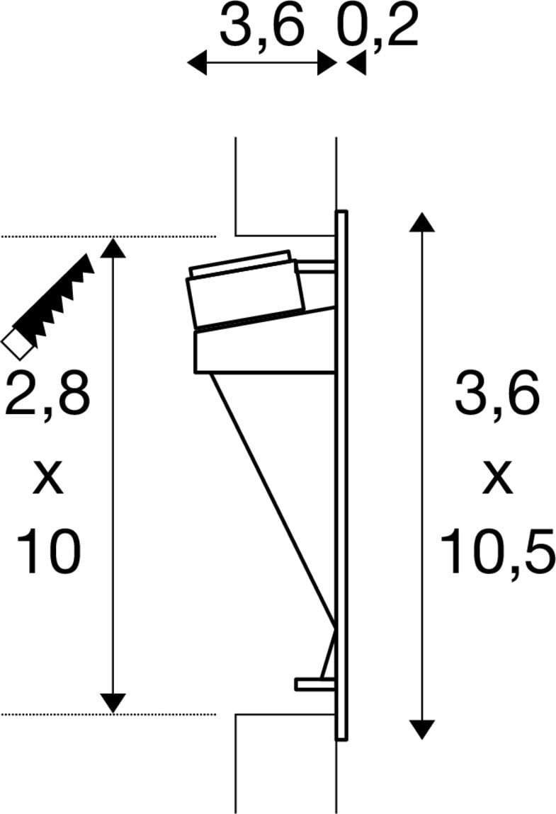 Intérieur encastré mural avec corps lumineux LED fixe. Matériau principal: Aluminium, Couleur: blanc, Form: rectangulaire, Puissance assignée: 2.2 W, Flux lumineux assigné: 6 lm, Température de couleur (CCT): 3000K, Indice général de rendu des couleurs (IRC) Ra: 90, Maintien du flux lumineux: L70B50 ≥ 35000 h, Classe de protection (EN 61140): III, Indice de protection (DIN EN 60529): IP20, donc Protection contre les corps étrangers solides d'un diamètre > 12,5 mm, Dimension (L/W/H): ( 3.8 / 3.6 / 10.5 cm ), Poids: 0.086 kg. Le produit répond aux exigences essentielles des directives européennes applicables et de la loi sur la sécurité des produits et porte le marquage CE.SLV Référence 1002979 / EAN 4024163231718