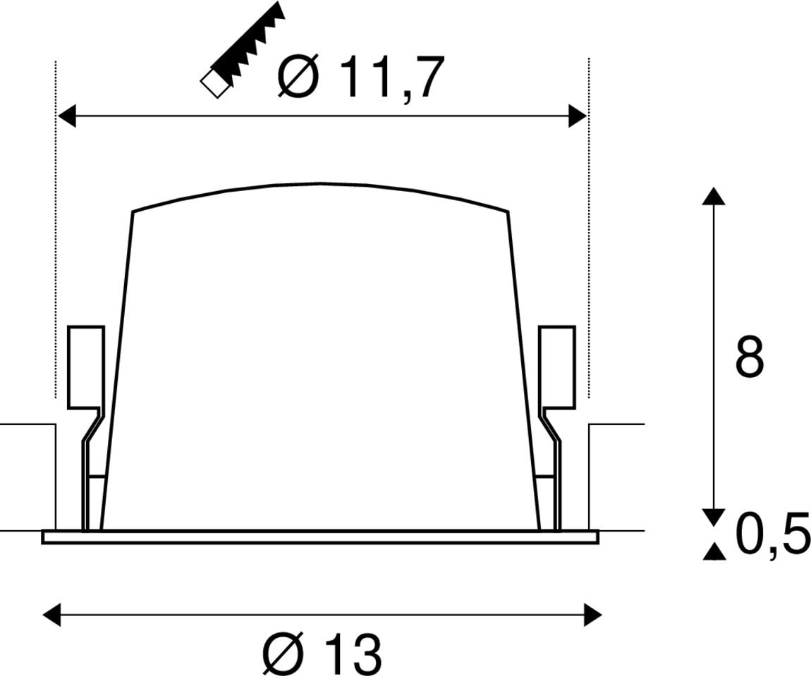 Intérieur plafonnier encastré avec corps lumineux LED fixe. Matériau principal: Aluminium et polycarbonate (PC), Couleur: blanc et blanc, Form: rond, Puissance assignée: 25.41 W, Flux lumineux assigné: 2250 lm, Température de couleur (CCT): 2700K, Indice général de rendu des couleurs (IRC) Ra: 90, Maintien du flux lumineux: L80B50 ≥ 50000 h, Classe de protection (EN 61140): III, Indice de protection (DIN EN 60529): IP20/IP44, donc protection contre les corps étrangers solides > 12,5mm / protection contre les corps étrangers solides > 1mm et protection contre les projections d'eau dans toutes les directions, Degré de résistance aux chocs selon IEC 62262: IK02, Diamètre du luminaire: 13 cm, Diamètre de la découpe: 11.7 cm, Dimension (L/W/H): ( 13 / 13 / 8.5 cm ), Poids: 0.465 kg. Le produit répond aux exigences essentielles des directives européennes applicables et de la loi sur la sécurité des produits et porte le marquage CE.SLV Référence 1003929 / EAN 4024163240796