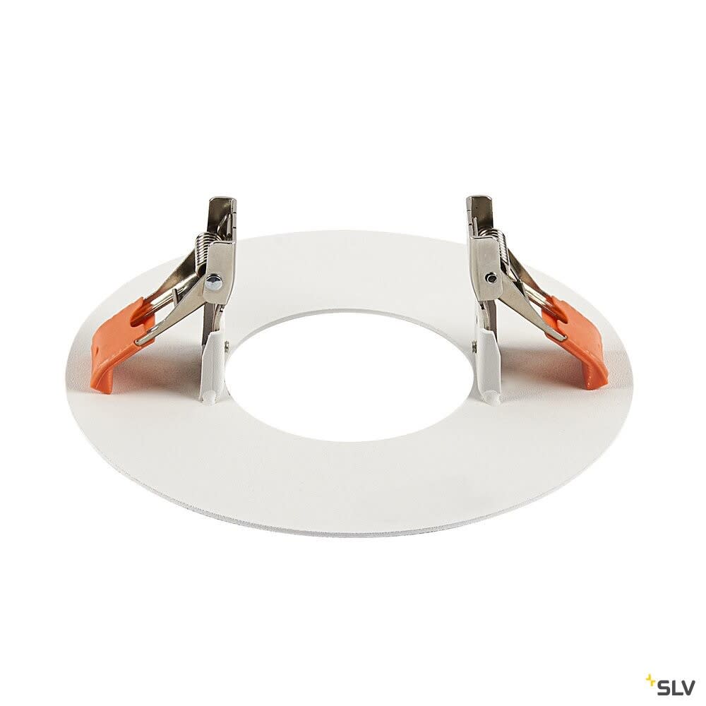 Cadre de montage. Matériau principal: Acier, Couleur: blanc, Diamètre du luminaire: 16 cm, Diamètre de la découpe: 9.5 cm, Dimension (L/W/H): ( 16 / 16 / 5.3 cm ), Poids: 0.259 kg.SLV Référence 1006136 / EAN 4024163262309