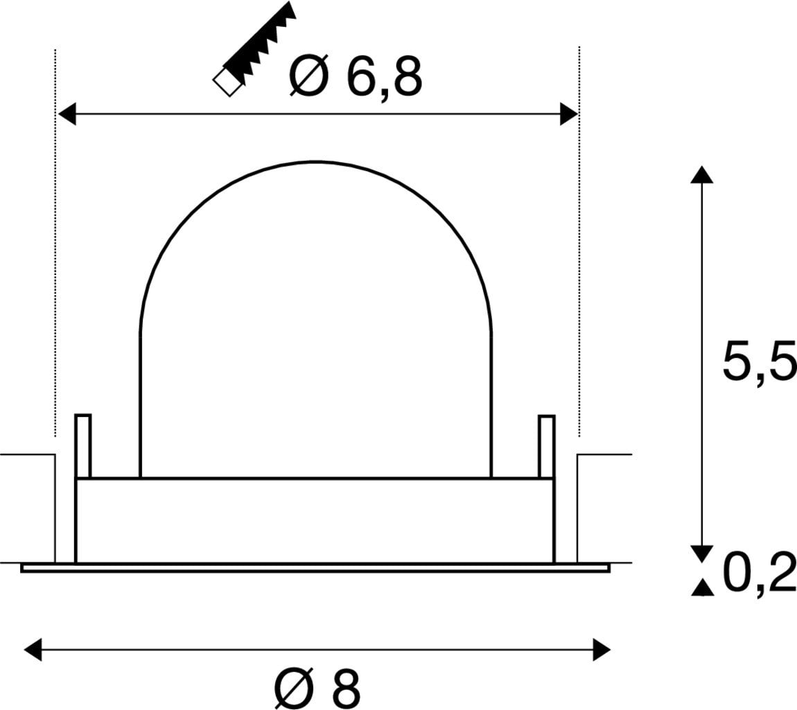 Intérieur plafonnier encastré avec corps lumineux LED fixe. Matériau principal: aluminium et matière plastique PC, Couleur: blanc et noir, Form: rond, Puissance assignée: 6.9 W, Flux lumineux assigné: 950 lm, Température de couleur (CCT): 3000K, Indice général de rendu des couleurs (IRC) Ra: 90, Maintien du flux lumineux: L90B10 ≥ 50000 h, Classe de protection (EN 61140): III, Indice de protection (DIN EN 60529): IP20, Diamètre du luminaire: 8 cm, Diamètre de la découpe: 6.8 cm, Dimension (L/W/H): ( 8 / 8 / 5.7 cm ), Poids: 0.11 kg. Le produit répond aux exigences essentielles des directives européennes applicables et de la loi sur la sécurité des produits et porte le marquage CE.SLV Référence 1010059 / EAN 4024163306959