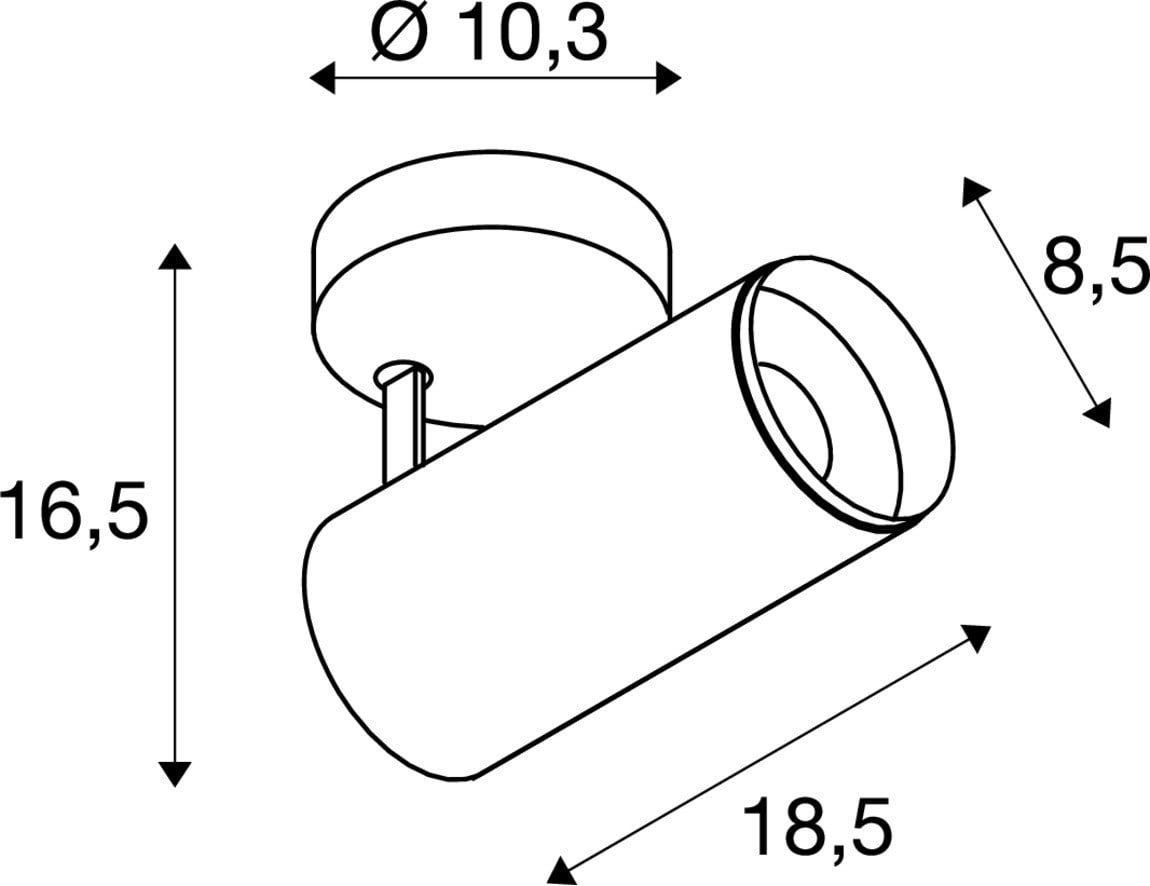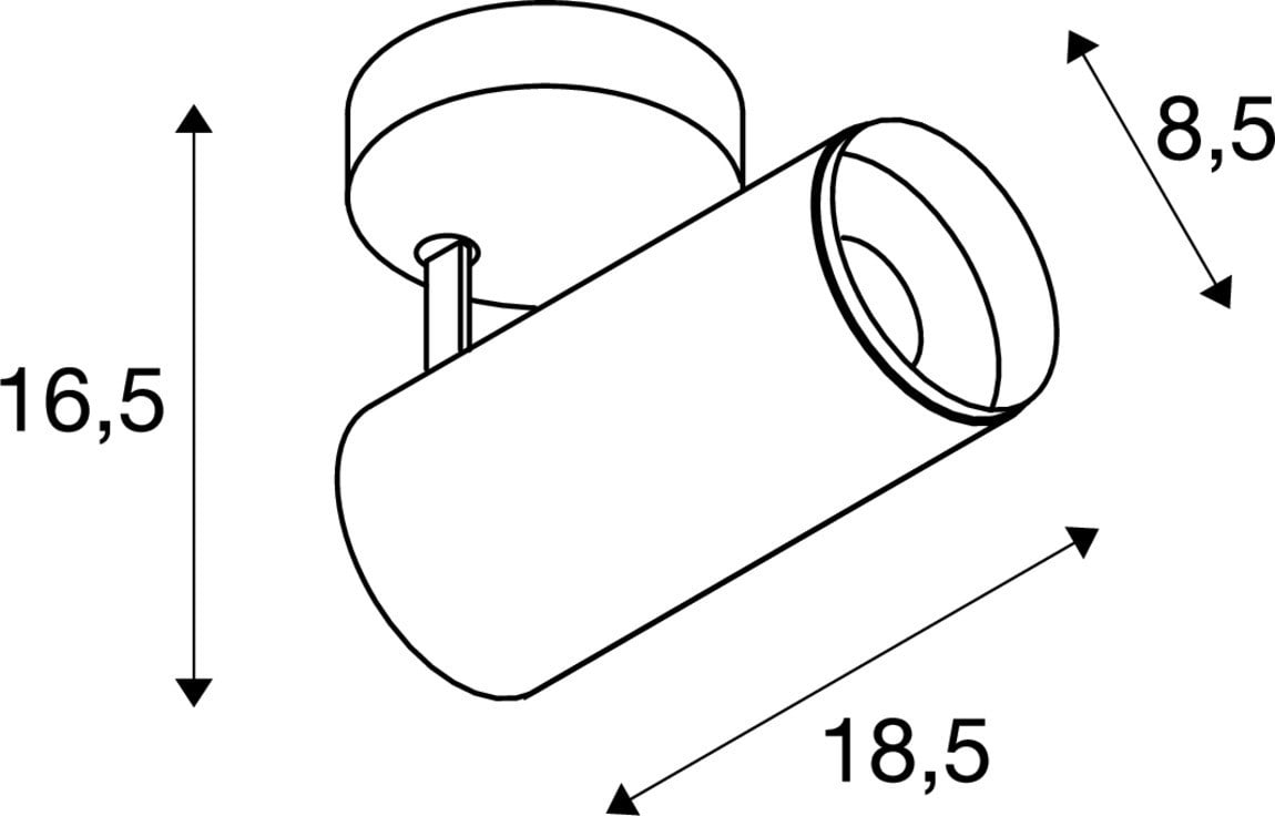 Intérieur plafonniers avec corps lumineux LED fixe. Matériau principal: Aluminium et plastique, Couleur: blanc et noir, Dimmable: Variateur en fin de phase, Form: cylindrique, Puissance assignée: 14 W, Flux lumineux assigné: 1750 lm, Température de couleur (CCT): 2700K, Indice général de rendu des couleurs (IRC) Ra: 90, Maintien du flux lumineux: L90B10 ≥ 50000 h, Classe de protection (EN 61140): I, Indice de protection (DIN EN 60529): IP20, Tension d'alimentation: 220-240V ~50/60 Hz, Diamètre du luminaire: 8.5 cm, Diamètre du baldaquin: 10.3 cm, Dimension (L/W/H): ( 18.5 / 8.5 / 16.5 cm ), Poids: 0.834 kg. Le produit répond aux exigences essentielles des directives européennes applicables et de la loi sur la sécurité des produits et porte le marquage CE.SLV Référence 1004199 / EAN 4024163243490