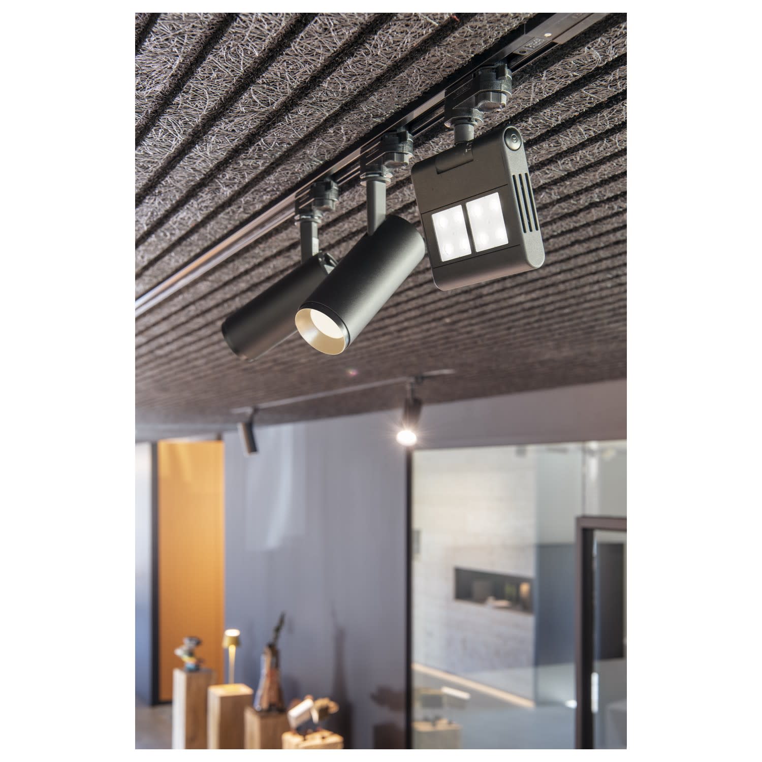 NUMINOS® S, spot pour rail 3 allumages, intérieur, noir/noir, LED, 10,42 W, 3000 K, 24°, IRC 90, 1020 lm, variable TRIAC, variateur en fin de phase, UGR < 13, aluminium