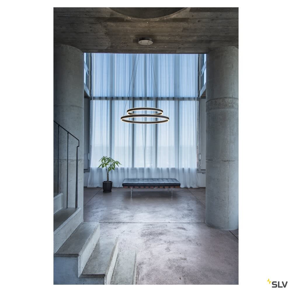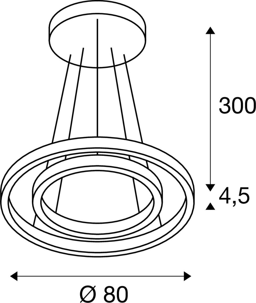 Intérieur suspensions avec corps lumineux LED fixe. Matériau principal: Aluminium et Acier, Couleur: noir, Dimmable: DALI, Form: rond, Puissance assignée: 55 W, Flux lumineux assigné: 2100 / 2120 lm, Température de couleur (CCT): 3000/4000K, Indice général de rendu des couleurs (IRC) Ra: 90, Maintien du flux lumineux: L80B10 ≥ 50000 h, Classe de protection (EN 61140): I, Tension d'alimentation: 220-240V ~50/60 Hz, Diamètre du luminaire: 80 cm, Diamètre du baldaquin: 30 cm, Dimension (L/W/H): ( 80 / 80 / 4.5 cm ), Poids: 4.721 kg. Le produit répond aux exigences essentielles des directives européennes applicables et de la loi sur la sécurité des produits et porte le marquage CE.SLV Référence 1004767 / EAN 4024163249171