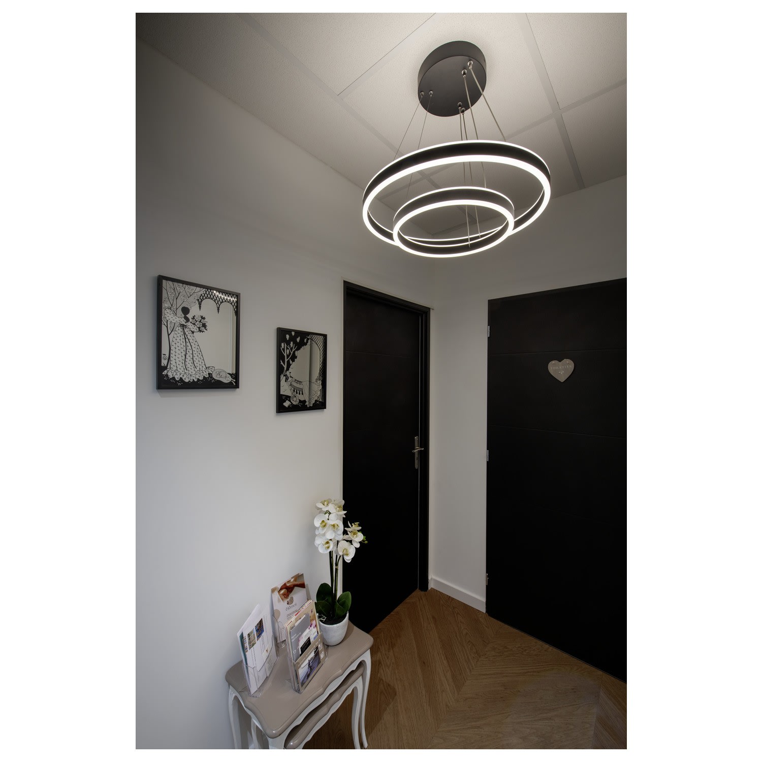 Vous souhaitez éclairer vos pièces avec une lumière variable particulièrement agréable et un design original ? C’est exactement l’objectif de la gamme ONE ! Appliques ou suspensions de forme circulaire ou linéaire, les luminaires de la famille ONE vous permettent d’éclairer parfaitement chaque pièce. Une durée de vie jusqu’à 30 000 heures les rend durables et faciles à entretenir. ONE trouve également sa place dans l’éclairage des boutiques, des commerces ou des restaurants, car ce luminaire se décline dans sa forme ronde, en version pour rail 3 allumages.