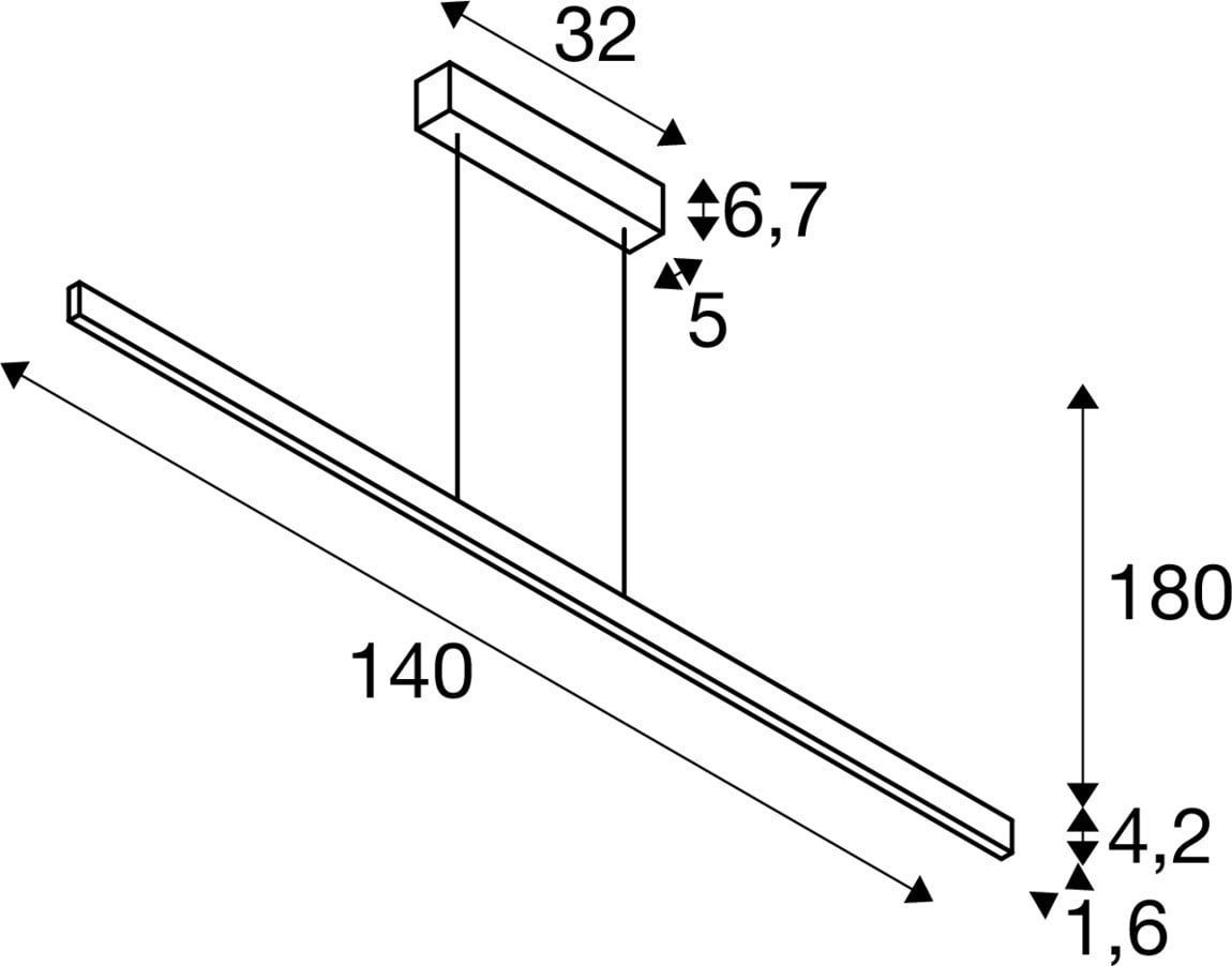 Intérieur suspensions avec corps lumineux LED fixe. Matériau principal: Aluminium et Acier, Couleur: noir, Dimmable: Variateur en fin de phase, Form: autre, Puissance assignée: 35 W, Flux lumineux assigné: 1810 / 1875 lm, Température de couleur (CCT): 2700/3000K, Indice général de rendu des couleurs (IRC) Ra: 90, Classe de protection (EN 61140): I, Tension d'alimentation: 220-240V ~50/60 Hz, Dimension (L/W/H): ( 140 / 1.6 / 4.2 cm ), Poids: 2.04 kg. Le produit répond aux exigences essentielles des directives européennes applicables et de la loi sur la sécurité des produits et porte le marquage CE.SLV Référence 1006188 / EAN 4024163262651