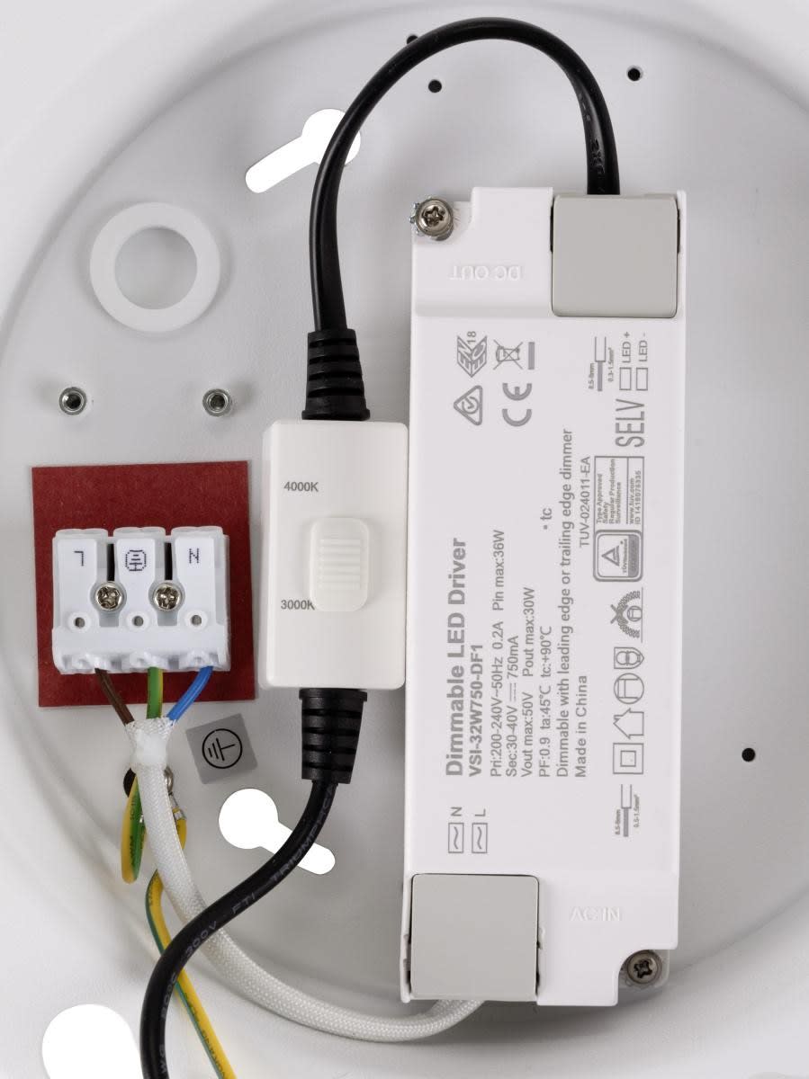 Intérieur plafonniers avec corps lumineux LED fixe. Matériau principal: aluminium et Acier, Couleur: blanc, Dimmable: Variateur en début de phase,Variateur en fin de phase, Form: rond, Puissance assignée: 29 W, Flux lumineux assigné: 3050 / 3300 lm, Température de couleur (CCT): 3000/4000K, Indice général de rendu des couleurs (IRC) Ra: 90, Maintien du flux lumineux: L80B10 ≥ 50000 h, Classe de protection (EN 61140): I, Indice de protection (DIN EN 60529): IP20, Degré de résistance aux chocs selon IEC 62262: IK02, Tension d'alimentation: 220-240V ~50/60 Hz, Diamètre du luminaire: 60 cm, Diamètre du baldaquin: 28 cm, Diamètre de la découpe: 20 cm, Dimension (L/W/H): ( 60 / 60 / 6 cm ), Poids: 4.8 kg. Le produit répond aux exigences essentielles des directives européennes applicables et de la loi sur la sécurité des produits et porte le marquage CE.SLV Référence 1010422 / EAN 4024163316026