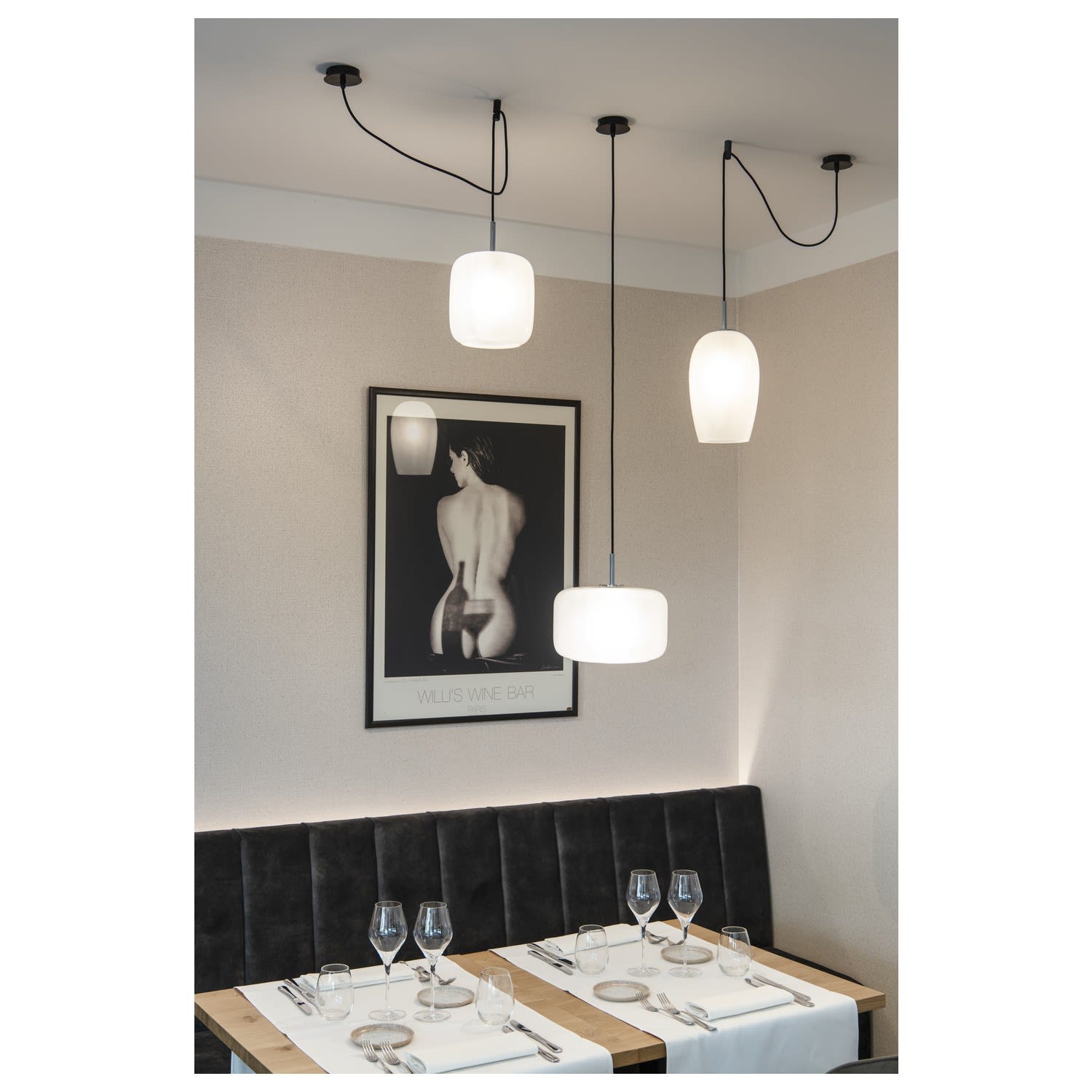 La suspension cylindrique PANTILO 16 a une longueur de suspension maximale de 250 cm. Avec son diffuseur cylindrique en verre chromé de haute qualité, PANTILO 16 est belle à voir surtout quand elle est combinée pour former un nuage de luminaires personnalisé.