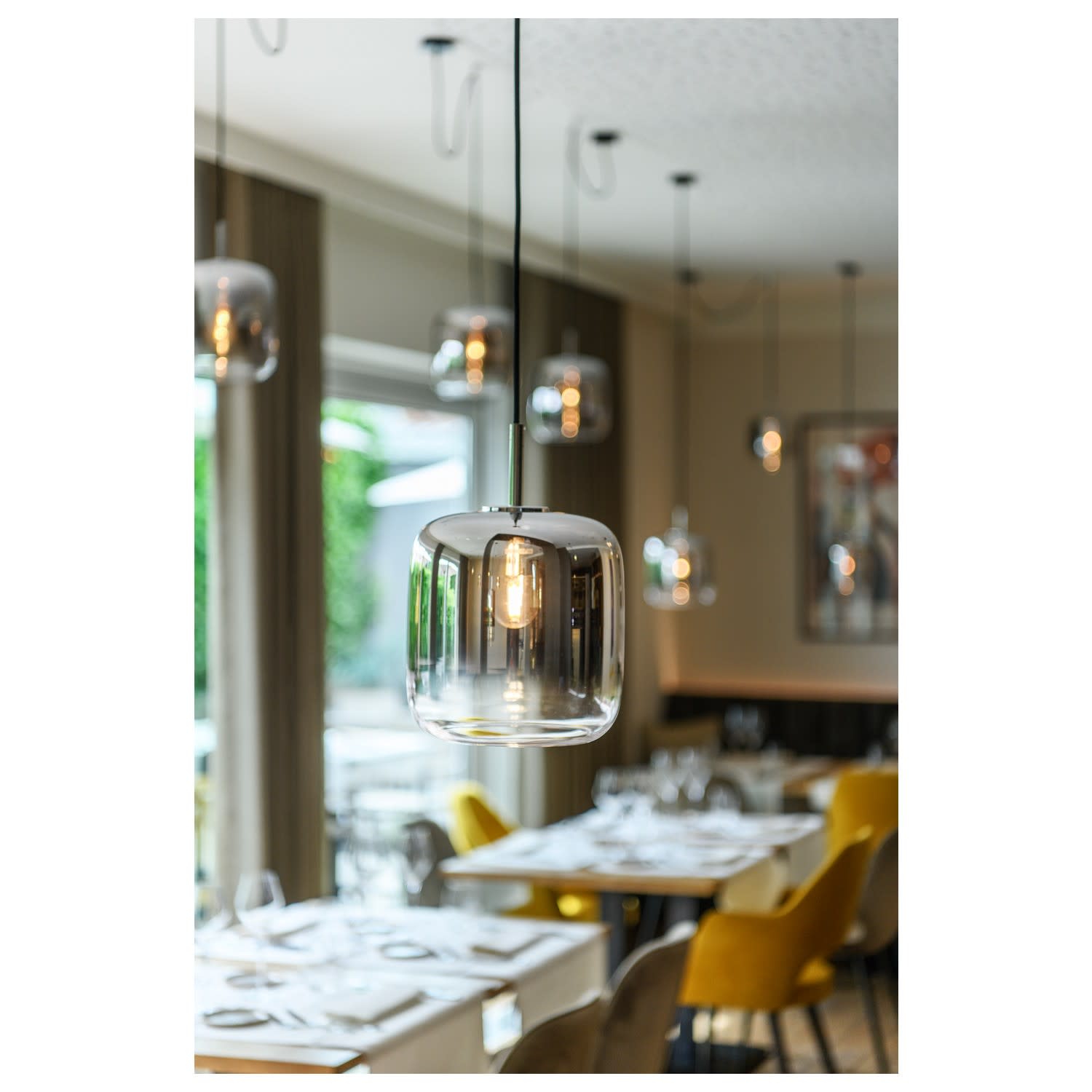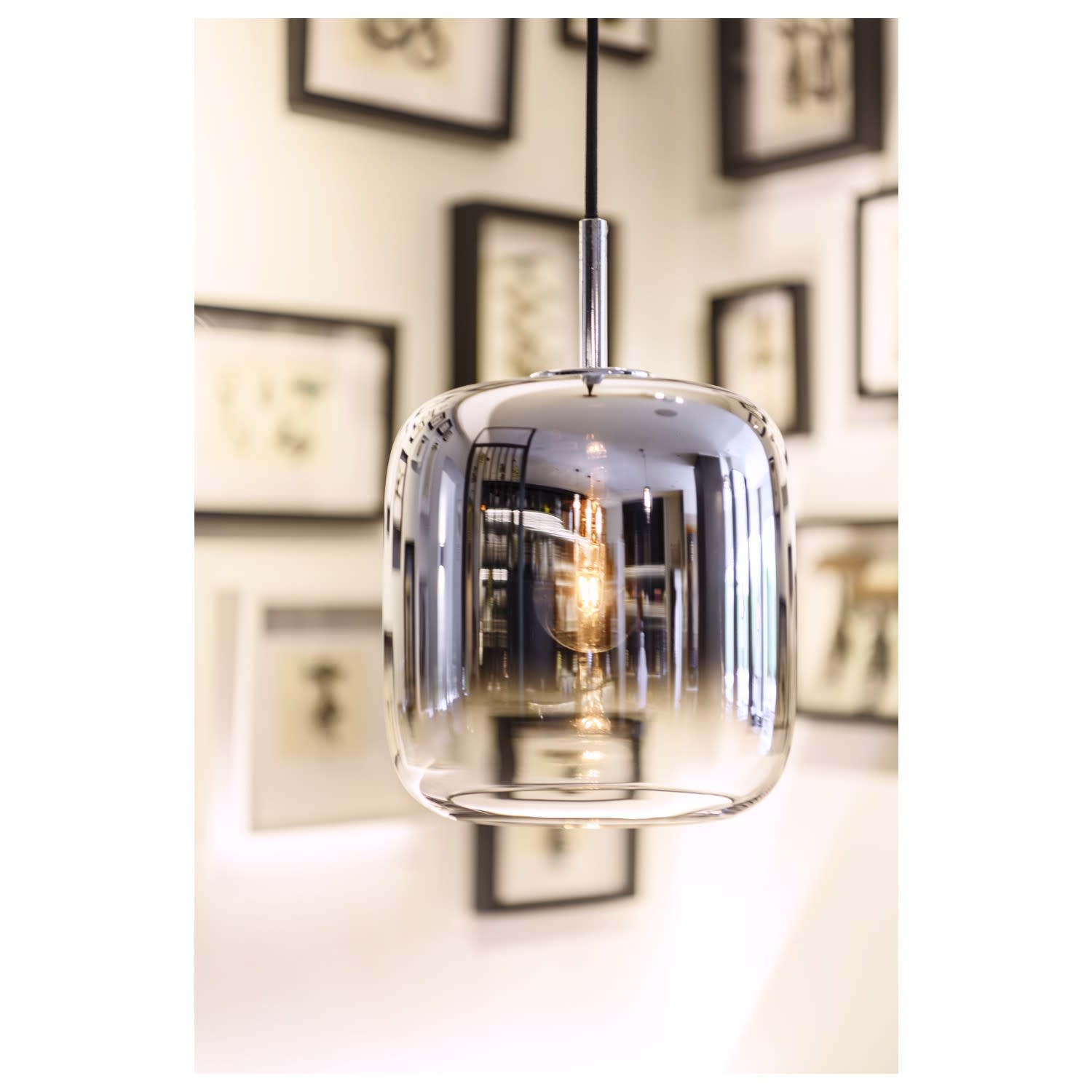 La suspension cylindrique PANTILO 16 a une longueur de suspension maximale de 250 cm. Avec son diffuseur cylindrique en verre chromé de haute qualité, PANTILO 16 est belle à voir surtout quand elle est combinée pour former un nuage de luminaires personnalisé.