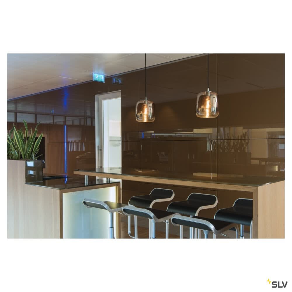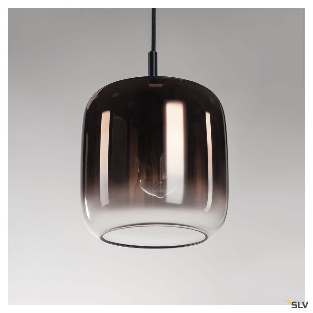 Intérieur suspensions. Matériau principal: Verre, Couleur: cuivre, Culot: E27, Form: cylindrique, Puissance assignée: 15 W, Classe de protection (EN 61140): II, Indice de protection (DIN EN 60529): IP20, donc Protection contre les corps étrangers solides d'un diamètre > 12,5 mm, Tension d'alimentation: 220-240V ~50/60 Hz, Diamètre du luminaire: 20 cm, Dimension (L/W/H): ( 20 / 20 / 21.3 cm ), Poids: 1.044 kg. Le produit répond aux exigences essentielles des directives européennes applicables et de la loi sur la sécurité des produits et porte le marquage CE.SLV Référence 1003005 / EAN 4024163231954