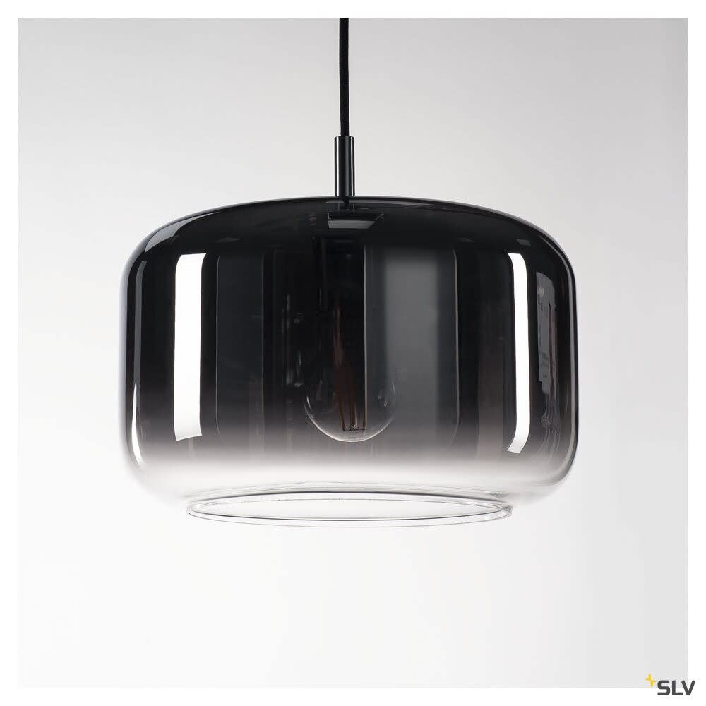 Intérieur suspensions. Matériau principal: Verre, Couleur: chrome, Culot: E27, Form: cylindrique, Puissance assignée: 15 W, Classe de protection (EN 61140): II, Indice de protection (DIN EN 60529): IP20, donc Protection contre les corps étrangers solides d'un diamètre supérieur à 12,5 mm, Tension d'alimentation: 220-240V ~50/60 Hz, Diamètre du luminaire: 28 cm, Dimension (L/W/H): ( 28 / 28 / 17.2 cm ), Poids: 1.265 kg. Le produit répond aux exigences essentielles des directives européennes applicables et de la loi sur la sécurité des produits et porte le marquage CE.SLV Référence 1003006 / EAN 4024163231961