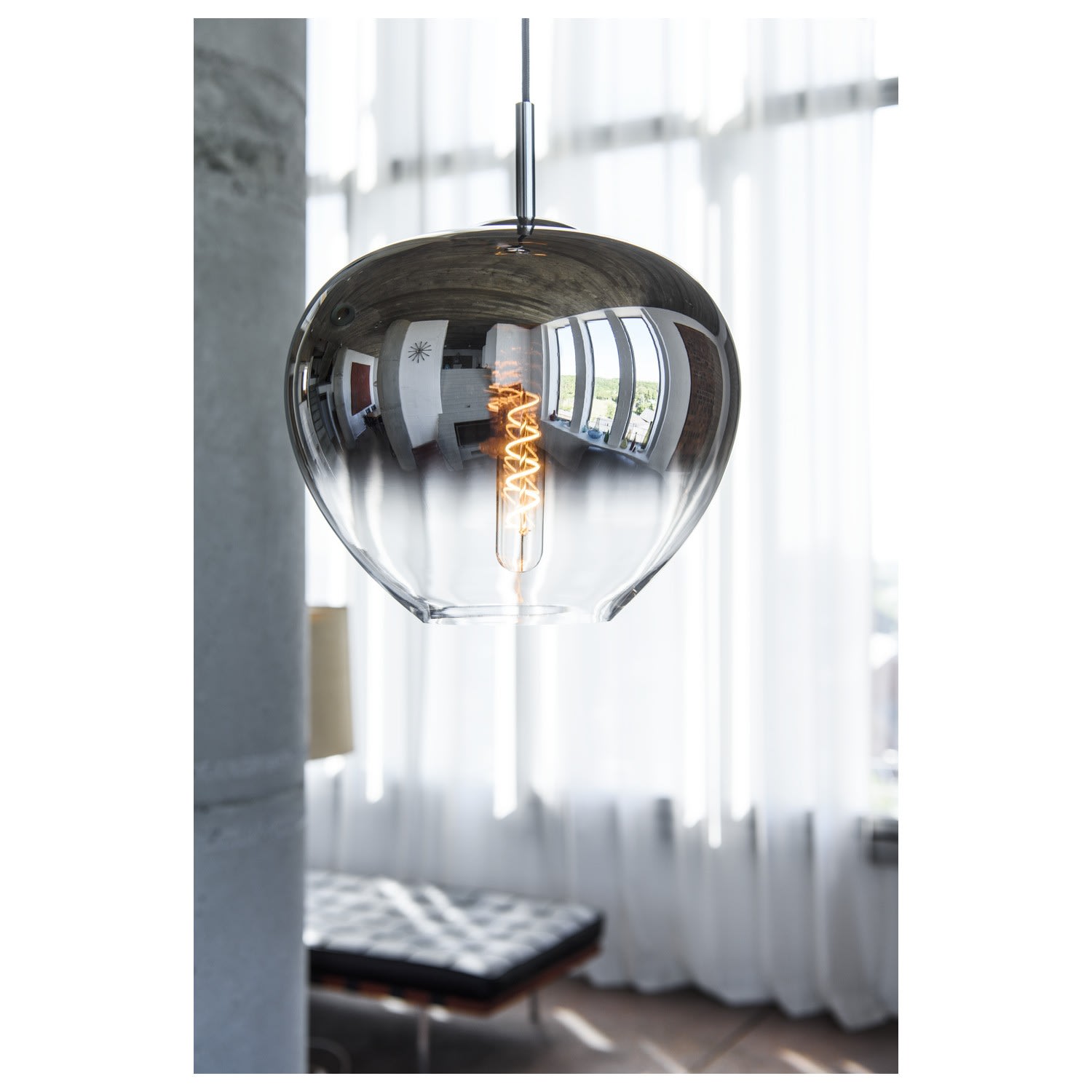 La suspension cylindrique PANTILO 16 a une longueur de suspension maximale de 250 cm. Avec son diffuseur cylindrique en verre chromé de haute qualité, PANTILO 16 est belle à voir surtout quand elle est combinée pour former un nuage de luminaires personnalisé.