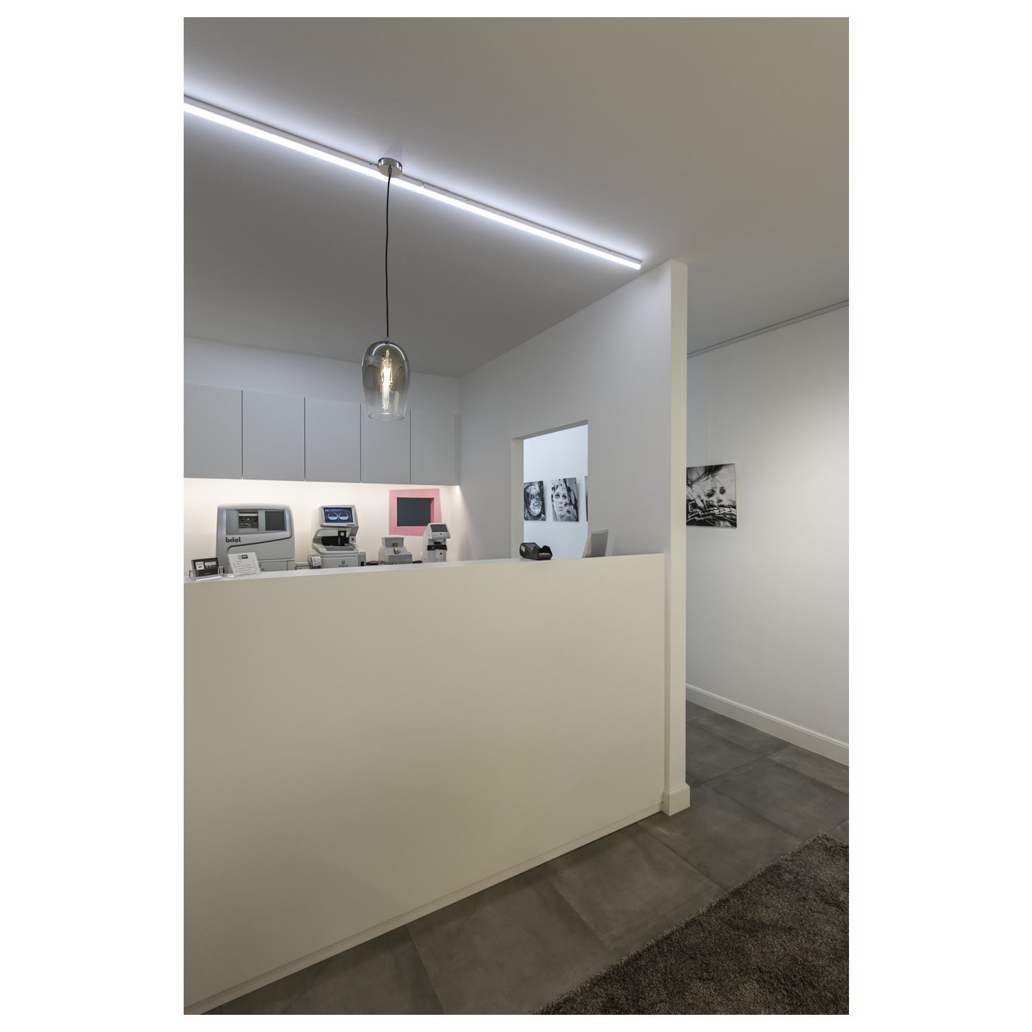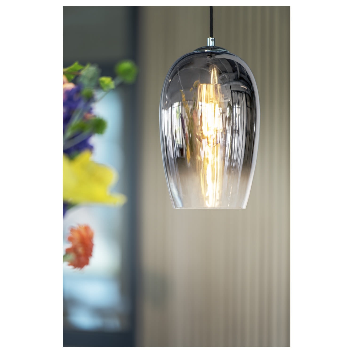 La suspension cylindrique PANTILO 16 a une longueur de suspension maximale de 250 cm. Avec son diffuseur cylindrique en verre chromé de haute qualité, PANTILO 16 est belle à voir surtout quand elle est combinée pour former un nuage de luminaires personnalisé.
