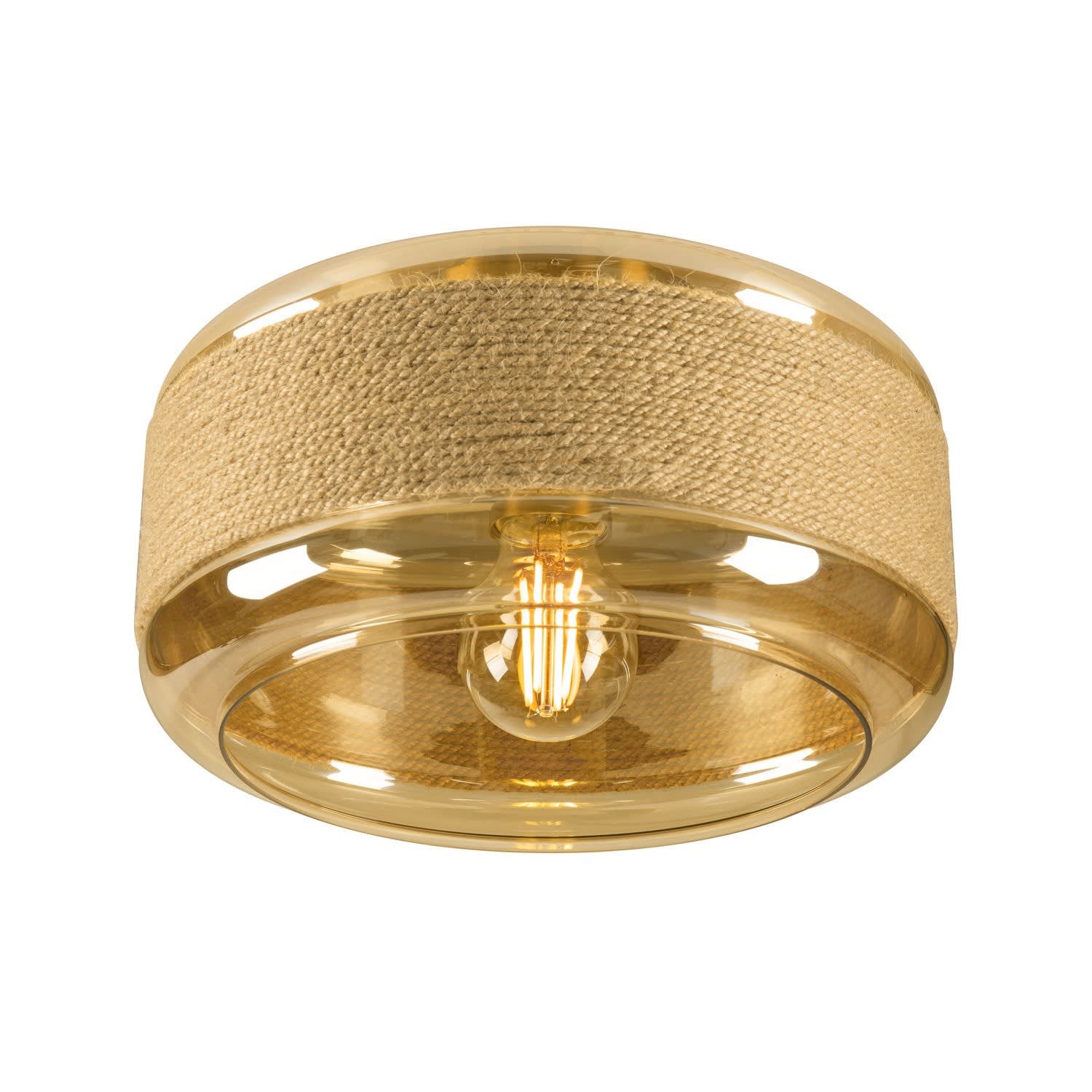 Design unique avec abat-jour en verre et filin en chanvre naturel.