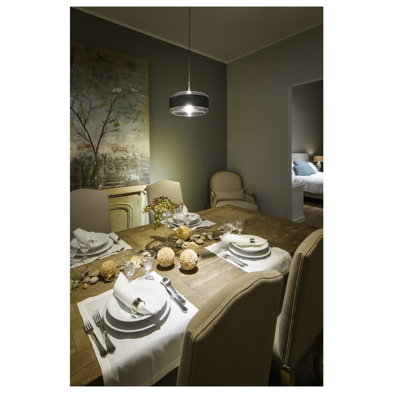 La suspension cylindrique PANTILO 16 a une longueur de suspension maximale de 250 cm. Avec son diffuseur cylindrique en verre chromé de haute qualité, PANTILO 16 est belle à voir surtout quand elle est combinée pour former un nuage de luminaires personnalisé.