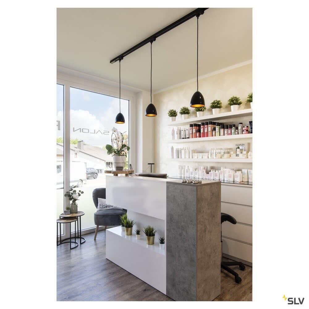Intérieur 3~ Suspension pour le Système de rail 3 allumages. Matériau principal: Acier, Couleur: noir, Culot: GU10, Form: conique, Puissance assignée: 35 W, Classe de protection (EN 61140): II, Indice de protection (DIN EN 60529): IP20, donc Protection contre les corps étrangers solides d'un diamètre > 12,5 mm, Tension d'alimentation: 230V ~50Hz, Diamètre du luminaire: 13.5 cm, Dimension (L/W/H): ( 13.5 / 13.5 / 14 cm ), Poids: 0.454 kg. Le produit répond aux exigences essentielles des directives européennes applicables et de la loi sur la sécurité des produits et porte le marquage CE.SLV Référence 153140 / EAN 4024163148504