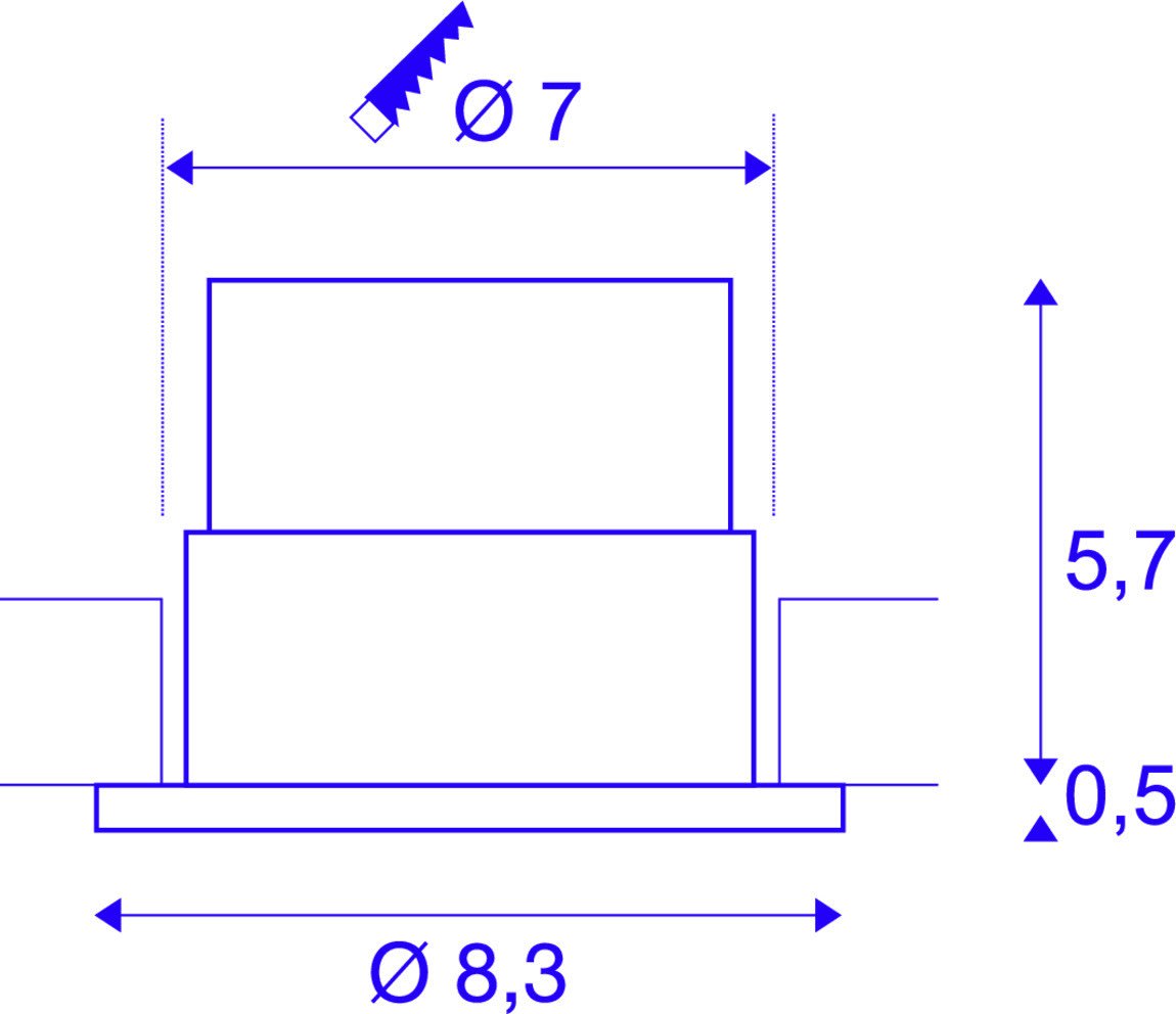 Extérieur plafonnier encastré avec corps lumineux LED fixe. Matériau principal: Aluminium et Verre, Couleur: noir, Dimmable: Variateur en début de phase,Variateur en fin de phase, Form: rond, Puissance assignée: 11 W, Flux lumineux assigné: 745 lm, Température de couleur (CCT): 3000K, Indice général de rendu des couleurs (IRC) Ra: 80, Maintien du flux lumineux: L70B50 ≥ 40000 h, Classe de protection (EN 61140): II, Indice de protection (DIN EN 60529): IP20/IP65, donc protection contre les corps étrangers solides > 12,5mm / protection contre l'intrusion de poussière et protection contre les jets d'eau de toutes directions, Degré de résistance aux chocs selon IEC 62262: IK02, Tension d'alimentation: 220-240V ~50/60 Hz, Diamètre du luminaire: 8.3 cm, Diamètre de la découpe: 7 cm, Dimension (L/W/H): ( 8.3 / 8.3 / 6.2 cm ), Poids: 0.321 kg. Le produit répond aux exigences essentielles des directives européennes applicables et de la loi sur la sécurité des produits et porte le marquage CE.SLV Référence 114440 / EAN 4024163151429