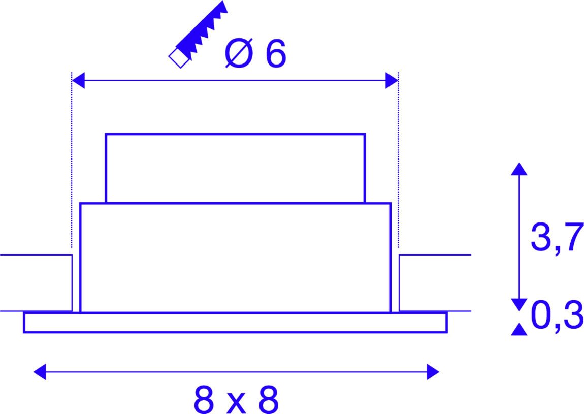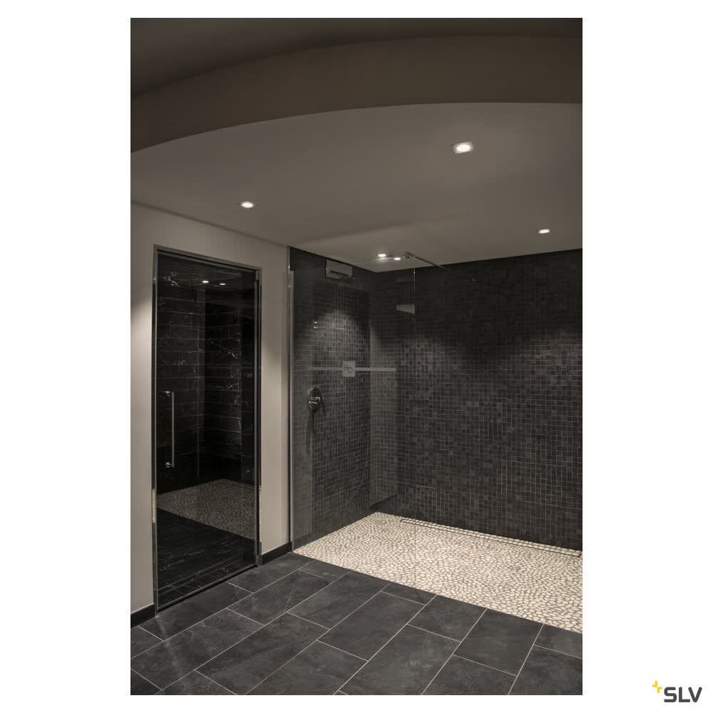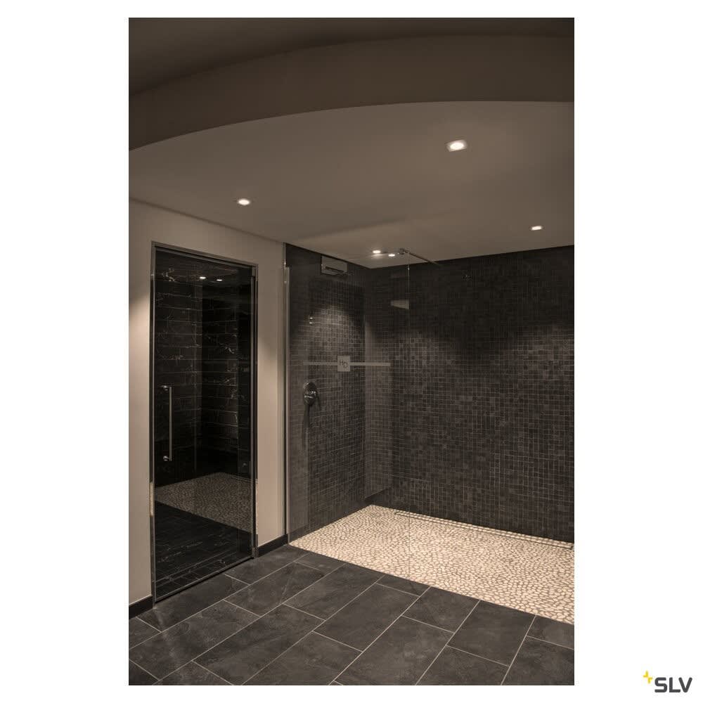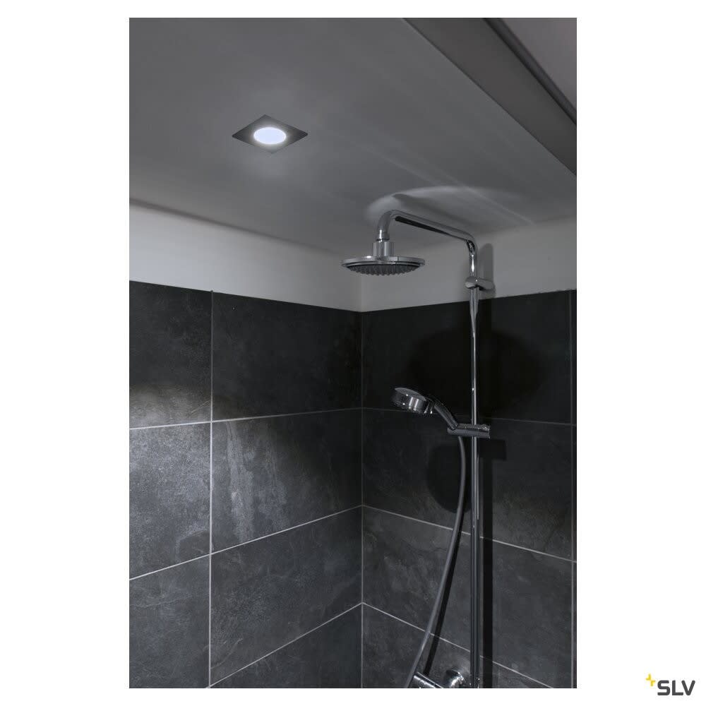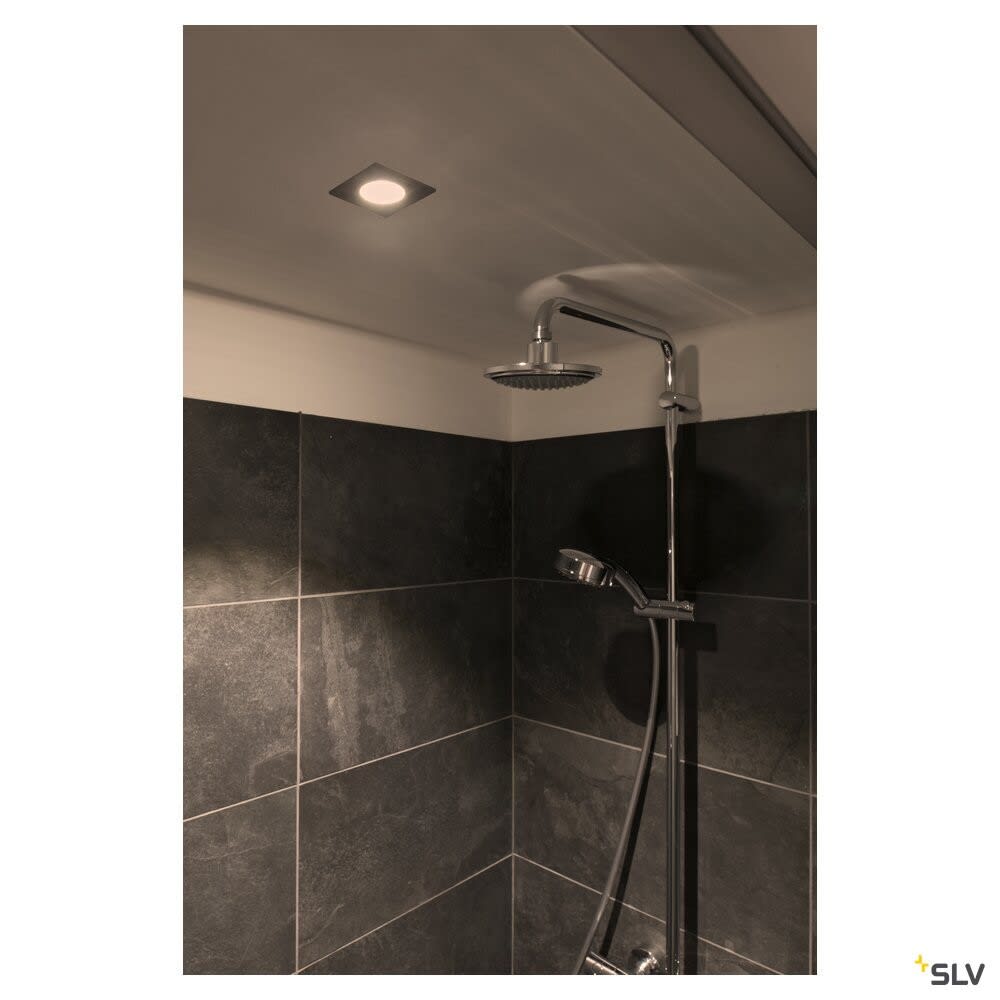 Intérieur plafonnier encastré avec corps lumineux LED fixe. Matériau principal: Aluminium et Verre, Couleur: blanc, Dimmable: Dim-to-Warm,Variateur en début de phase,Variateur en fin de phase, Form: rectangulaire, Puissance assignée: 7.3 W, Flux lumineux assigné: 44 / 440 lm, Température de couleur (CCT): 1800-3000K, Indice général de rendu des couleurs (IRC) Ra: 95, Maintien du flux lumineux: L70B50 ≥ 30000 h, Classe de protection (EN 61140): II, Indice de protection (DIN EN 60529): IP20/IP65, donc protection contre les corps étrangers solides > 12,5mm / protection contre la pénétration de la poussière et protection contre les jets d'eau de toutes les directions, Degré de résistance aux chocs selon IEC 62262: IK02, Tension d'alimentation: 220-240V ~50/60 Hz, Diamètre de la découpe: 6 cm, Dimension (L/W/H): ( 8 / 8 / 4 cm ), Poids: 0.247 kg. Le produit répond aux exigences essentielles des directives européennes applicables et de la loi sur la sécurité des produits et porte le marquage CE.SLV Référence 1002102 / EAN 4024163222891