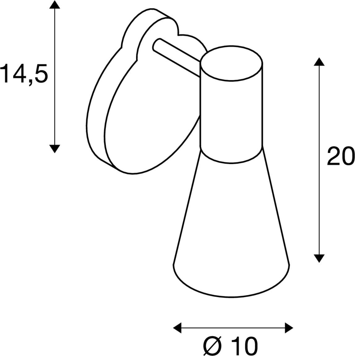 Intérieur appliques. Matériau principal: Aluminium et Acier, Couleur: noir, Culot: GU10, Form: conique, Puissance assignée: 10 W, Classe de protection (EN 61140): I, Indice de protection (DIN EN 60529): IP20, donc Protection contre les corps étrangers solides d'un diamètre supérieur à 12,5 mm, Tension d'alimentation: 230V ~50/60Hz, Dimension (L/W/H): ( 20 / 11.8 / 15 cm ), Poids: 0.496 kg. Le produit répond aux exigences essentielles des directives européennes applicables et de la loi sur la sécurité des produits et porte le marquage CE.SLV Référence 148540 / EAN 4024163165341