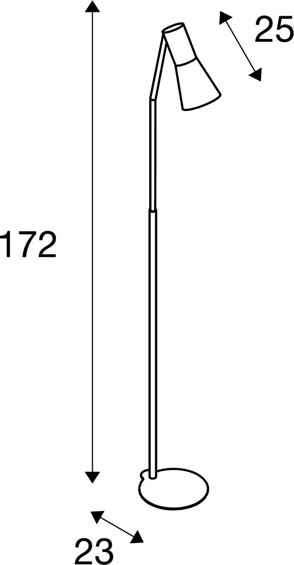 Intérieur lampadaires. Matériau principal: Aluminium et Acier, Couleur: noir, Culot: E27, Form: conique, Puissance assignée: 23 W, Classe de protection (EN 61140): I, Indice de protection (DIN EN 60529): IP20, donc Protection contre les corps étrangers solides d'un diamètre supérieur à 12,5 mm, Degré de résistance aux chocs selon IEC 62262: IK03, Tension d'alimentation: 230V ~50/60Hz, Dimension (L/W/H): ( 24 / 20 / 172 cm ), Poids: 6.265 kg. Le produit répond aux exigences essentielles des directives européennes applicables et de la loi sur la sécurité des produits et porte le marquage CE.SLV Référence 146010 / EAN 4024163158749