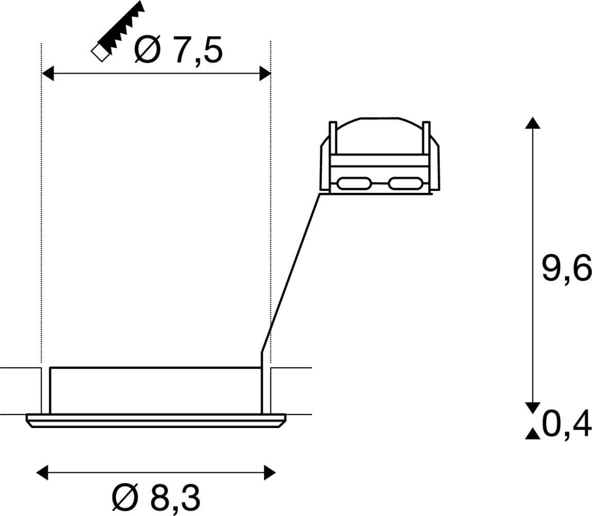 Intérieur plafonnier encastré. Matériau principal: Aluminium, Couleur: gris, Culot: GU10, Form: rond, Puissance assignée: 10 W, Classe de protection (EN 61140): II, Indice de protection (DIN EN 60529): IP20, donc Protection contre les corps étrangers solides ayant un diamètre supérieur à 12,5 mm, Tension d'alimentation: 230V ~50Hz, Diamètre du luminaire: 8.3 cm, Diamètre de la découpe: 7.5 cm, Dimension (L/W/H): ( 8.3 / 8.3 / 2.4 cm ), Poids: 0.141 kg. Le produit répond aux exigences essentielles des directives européennes applicables et de la loi sur la sécurité des produits et porte le marquage CE.SLV Référence 1000721 / EAN 4024163190138