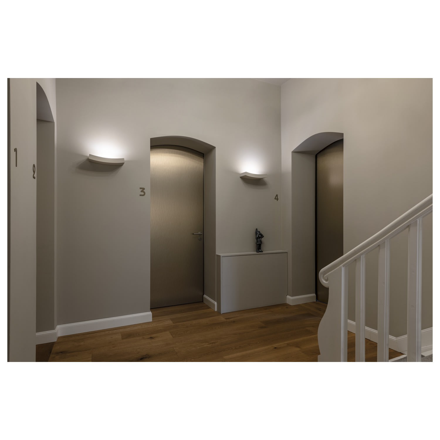 La gamme de luminaire PLASTRA est réalisée en plâtre blanc que vous pouvez peindre selon toutes vos envies. Cela facilite son intégration optimale dans tous les concepts chromatiques existants et projetés. Ce luminaire est prêt à être raccordé directement à la tension secteur 230V. Le papier de verre fourni sert au nettoyage de la surface. Le luminaire peut être recouvert de peinture murale à la suite d’un apprêt.