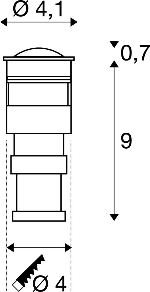 Extérieur encastré de sol avec corps lumineux LED fixe. Matériau principal: Inox 316 et Verre, Couleur: inox, Form: rond, Puissance assignée: 1 W, Flux lumineux assigné: 45 lm, Température de couleur (CCT): 3000K, Indice général de rendu des couleurs (IRC) Ra: 90, Maintien du flux lumineux: L70B50 ≥ 30000 h, Classe de protection (EN 61140): III, Indice de protection (DIN EN 60529): IP67, donc protection contre la pénétration de la poussière et protection contre l'immersion temporaire dans l'eau, Degré de résistance aux chocs selon IEC 62262: IK08, Tension d'alimentation: 350mA, Diamètre du luminaire: 4.1 cm, Diamètre de la découpe: 4 cm, Dimension (L/W/H): ( 6.5 / 4.1 / 4.1 cm ), Poids: 0.295 kg. Le produit répond aux exigences essentielles des directives européennes applicables et de la loi sur la sécurité des produits et porte le marquage CE.SLV Référence 228332 / EAN 4024163112093